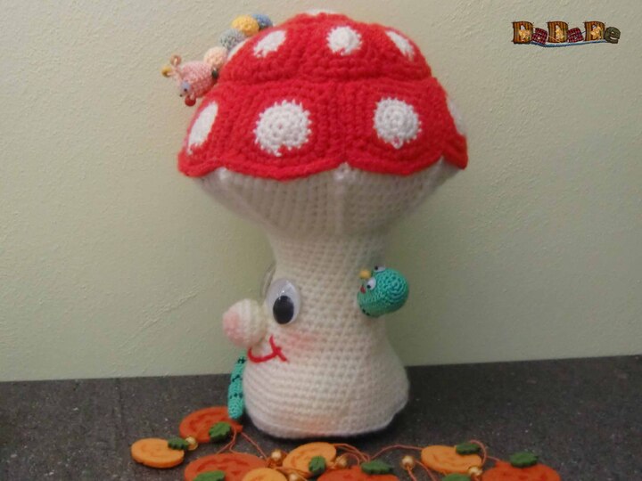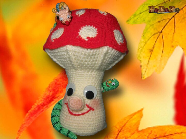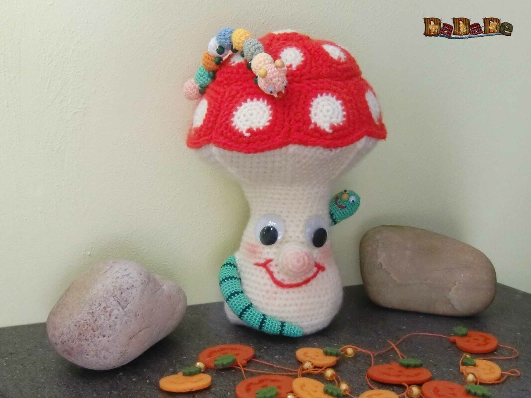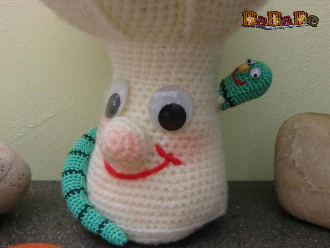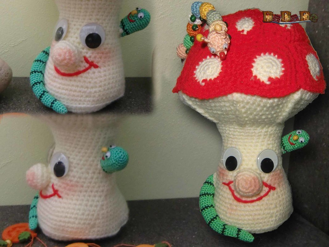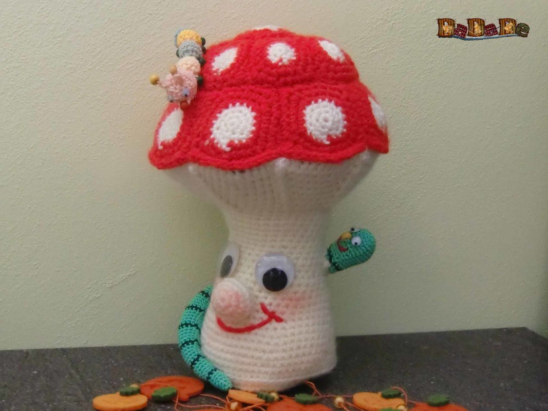 der Pilz ist schnell gehäkelt und für Raupe und Wurm kann man sehr gut