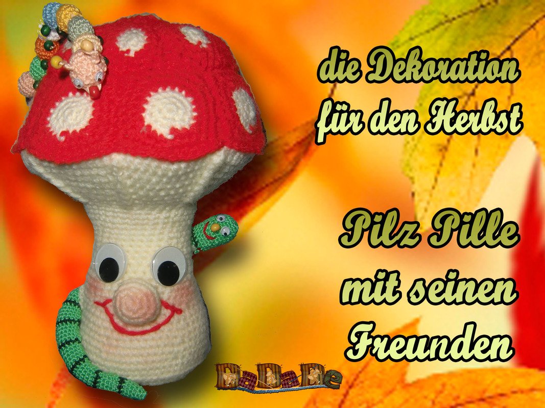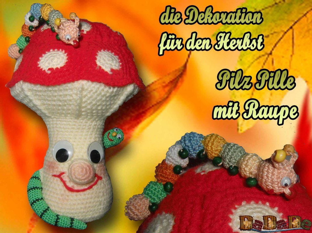 Sie kaufen hier die Anleitung für den Pilz Pille, mit Regenwurm und Raupe,