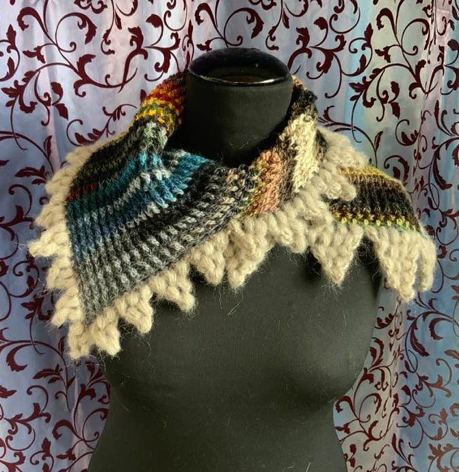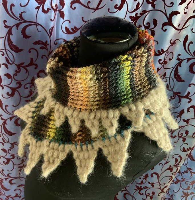 Loop mit Zacken....super um restliche Knäule zu verwerten..der Loop mit Zacken....besser als jeder Schal: schön warm...aber es hängt nix herum!