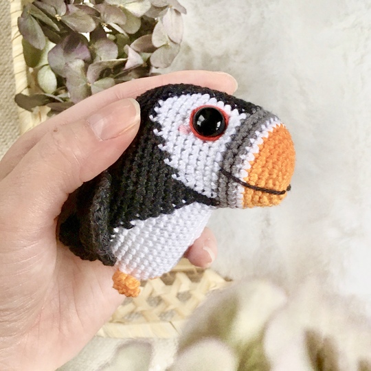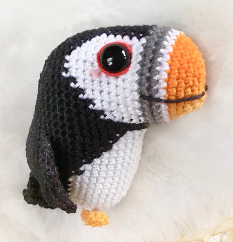 Der Papageitaucher Pico wird in einem Stück gehäkelt, beginnend beim Schnabel. Es muss nichts angenäht werden, denn auch die Flügel werden eingehäkelt.