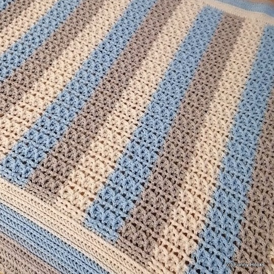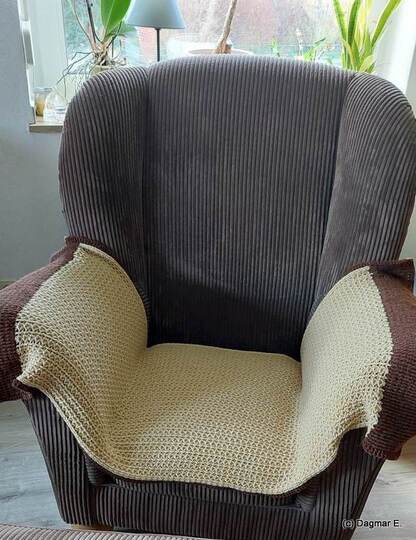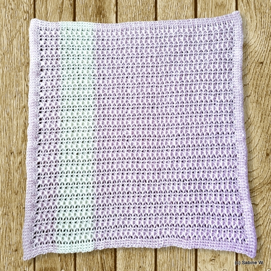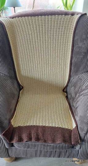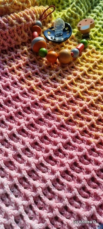 Für die Decke im Titelbild wurde 4-fädiges Modal verwendet, 1000 m/ 201 g mit einer NS 4,5 ergaben 66 x 66 cm
