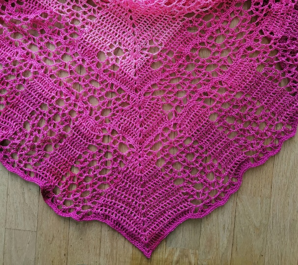 Ventana beeindruckt durch das tolle, "ineinanderlaufende" Muster, es scheint, als wäre es abwechselnd horizontal und vertikal gehäkelt, dieser Effekt verstärkt sich noch durch die schräge Form.