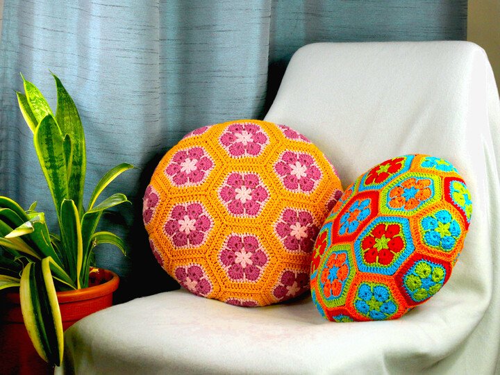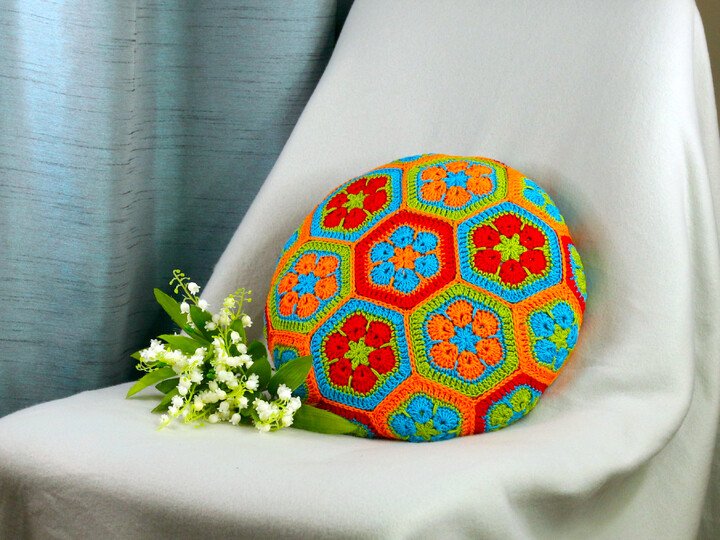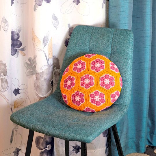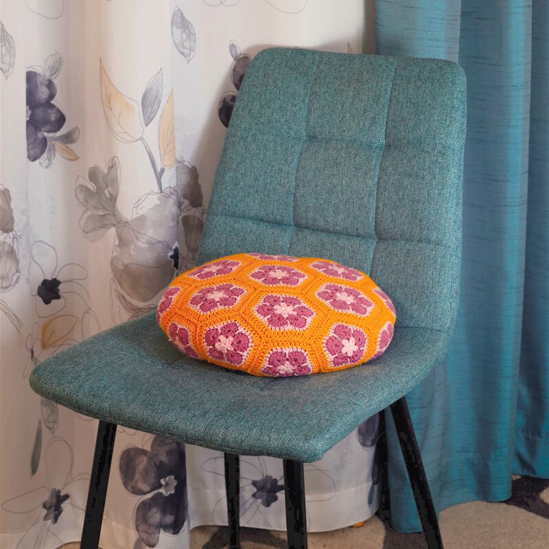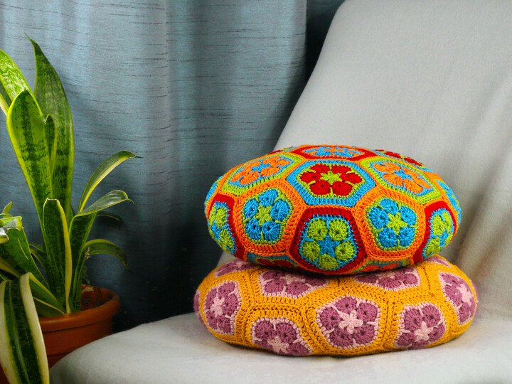 Du kannst dieses wunderschöne Kissen mit African Flowers häkeln. Das wird ein dekorativer Kissenbezug. In der Anleitung werden die Farben des Crazypatterns-Logos benutzt. So häkelst du dir ein tolles Crazypattern-Kissen. Auch als ein selbstgemachtes Geschenk kommt das Kissen wunderbar an.