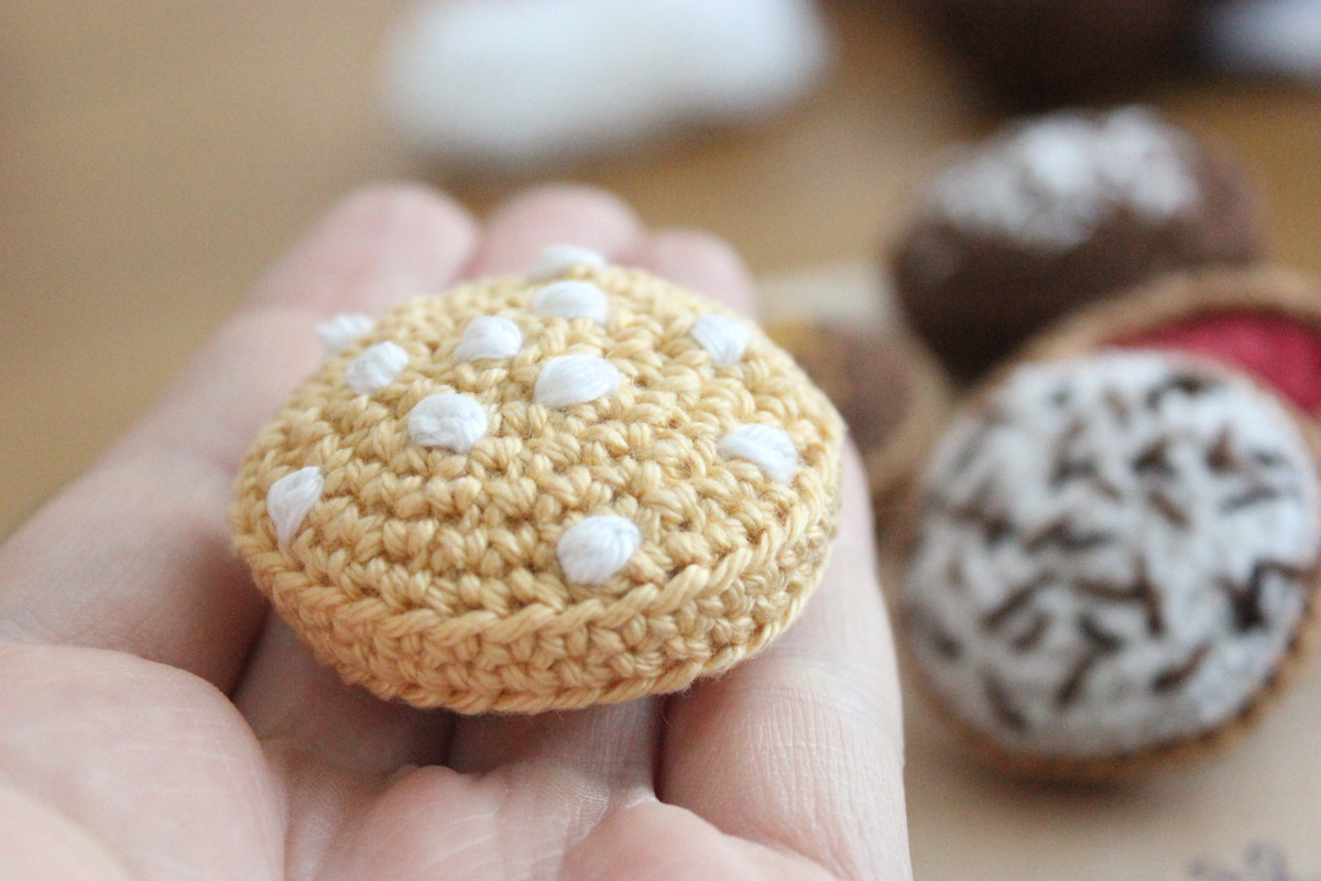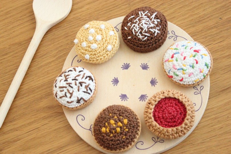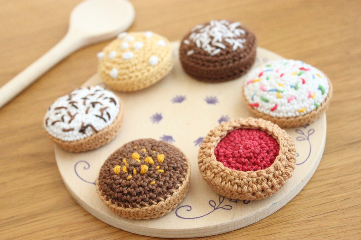 Nachdem ich schon Eier, Milch, Zucker und Mehl gehäkelt habe, muss natürlich auch ein passendes Ergebnis her, das die Kinder mit den Zutaten in ihrer Küche zaubern können: ein paar Kekse :-)
