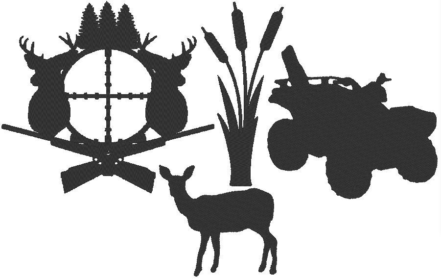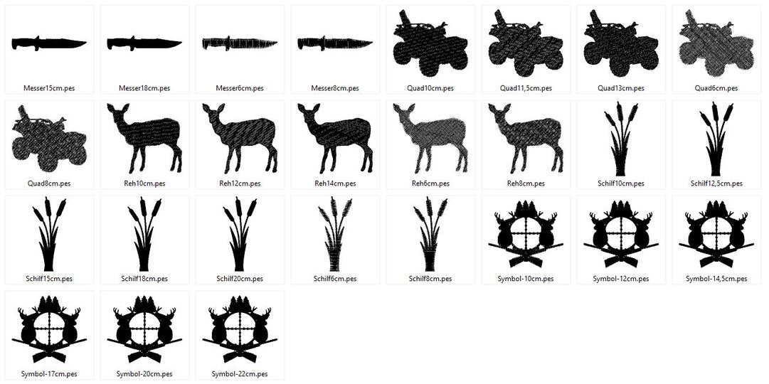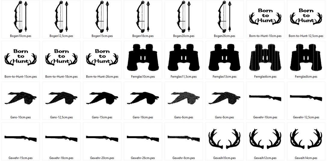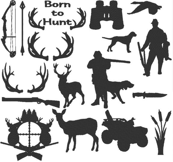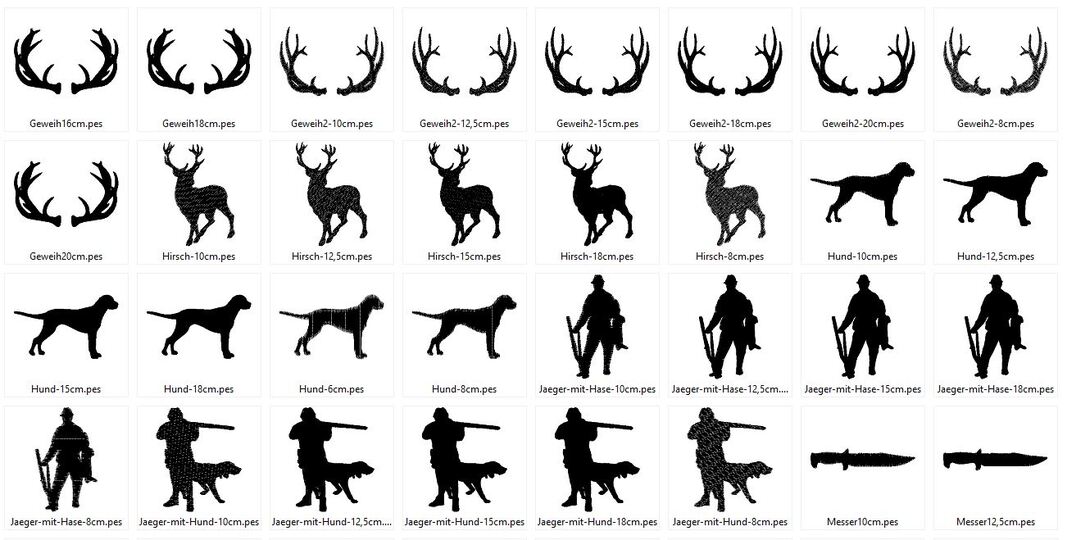 ♥ 16 Motive mit Jäger, Hund, Quad, Gewehr, Reh und Hisch als einfache Silhouetten Stickdateien ♥