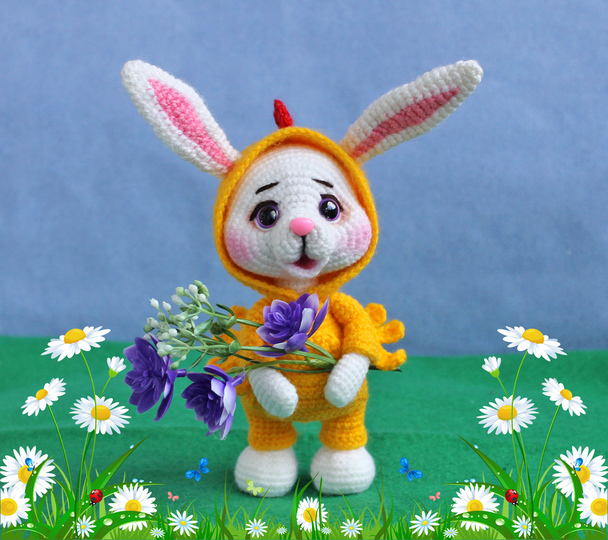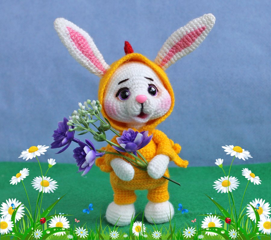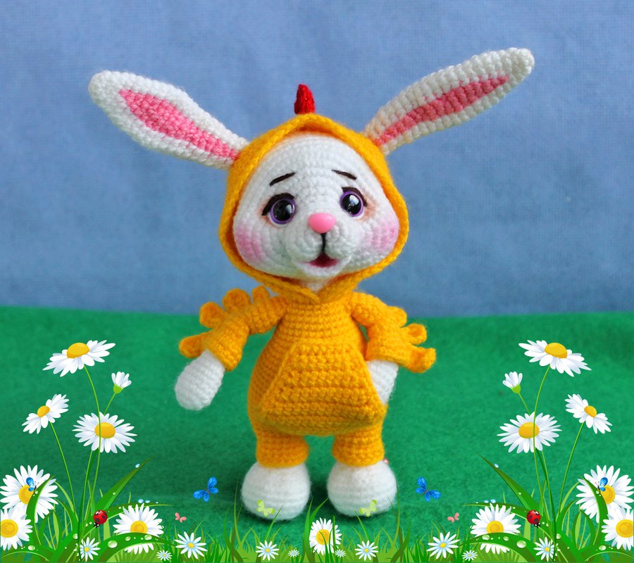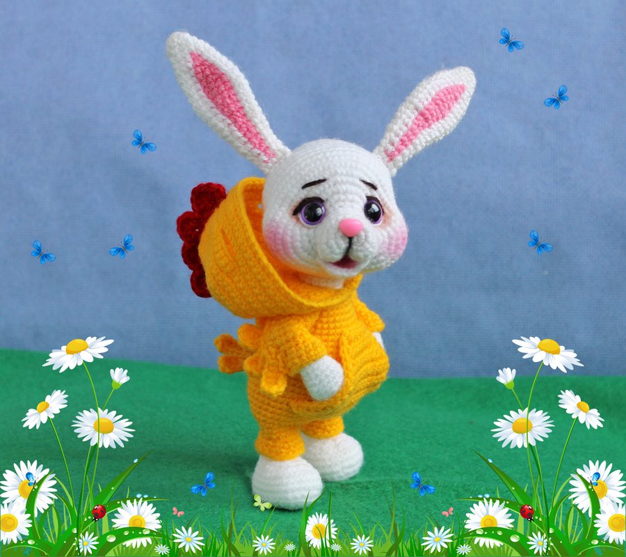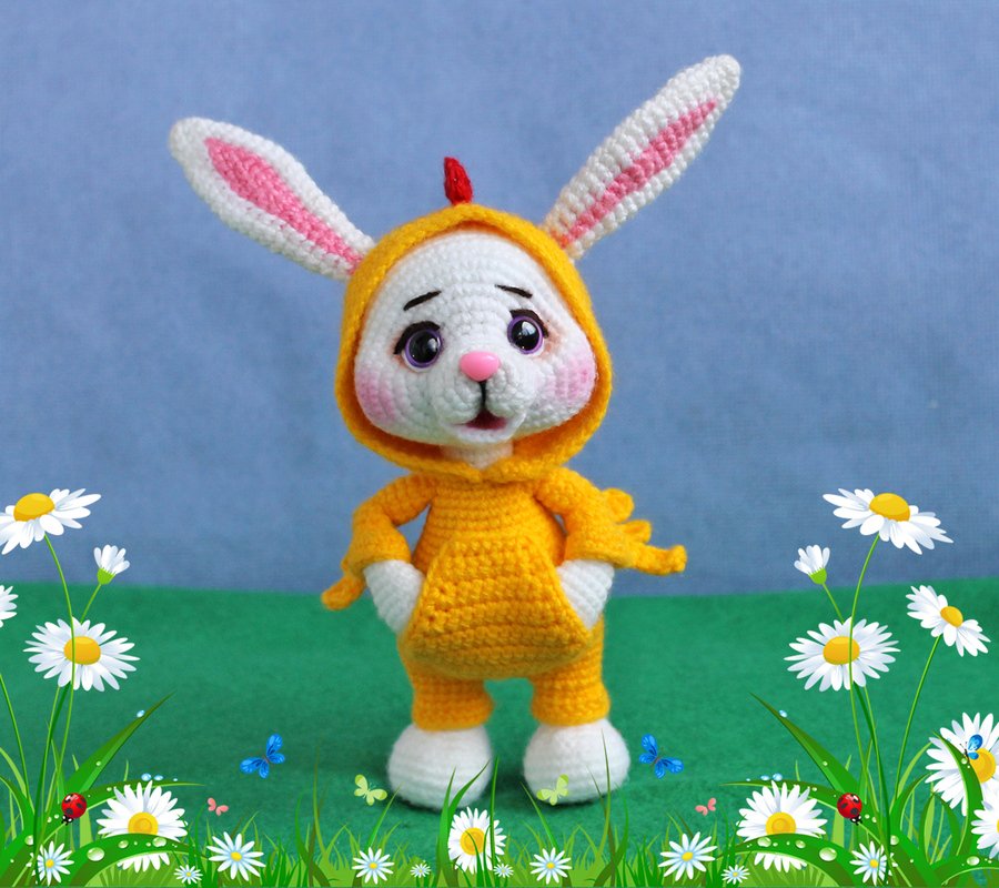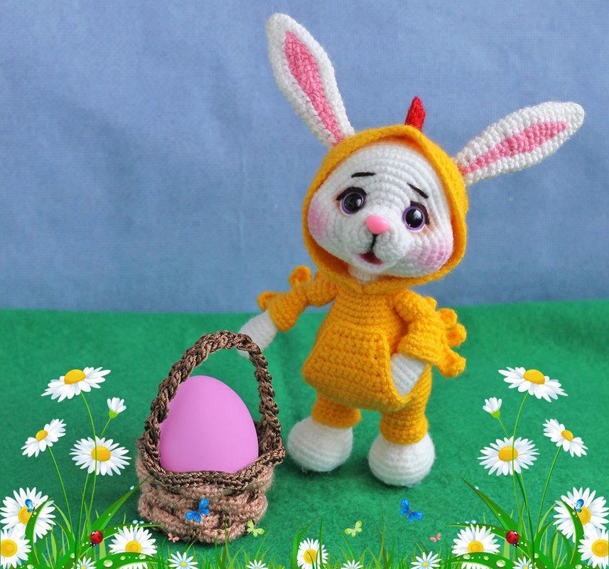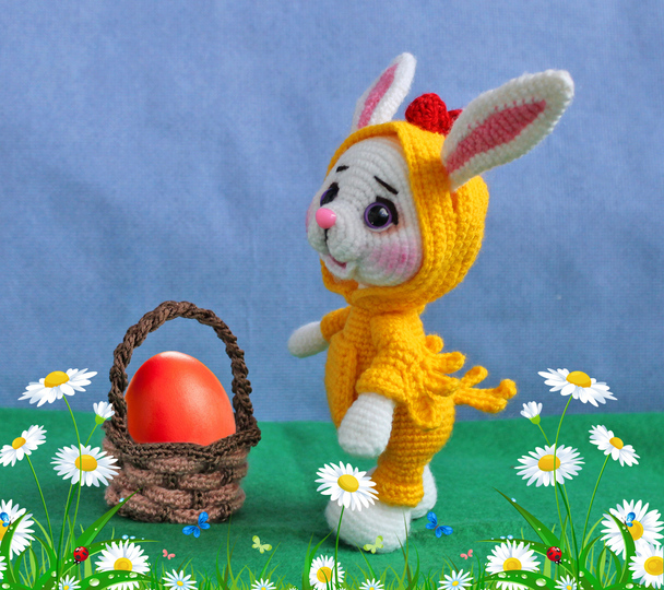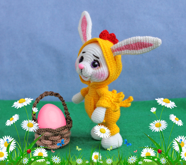 Ich möchte Ihnen meine neue Häkelanleitung vorstellen. Osterhase im Kückenoverall.