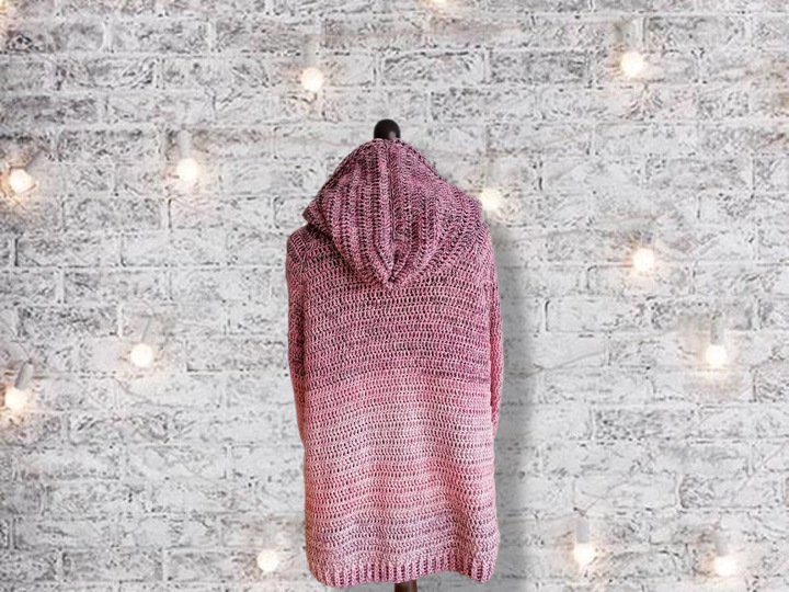 Unser Modell hat Größe L/XL (44/46) und wir haben 2500m 5 fädiges Garn verbraucht. Rechnet bitte je nach Größe/NS/Häkelstil 300-350m mehr/weniger ein.