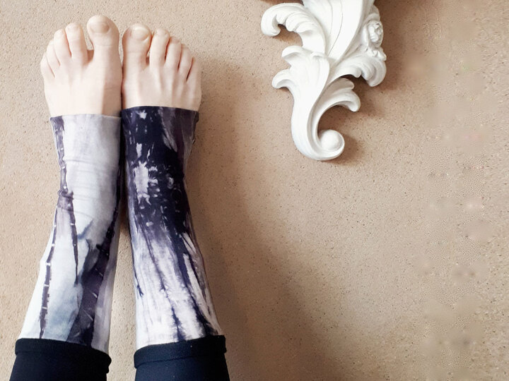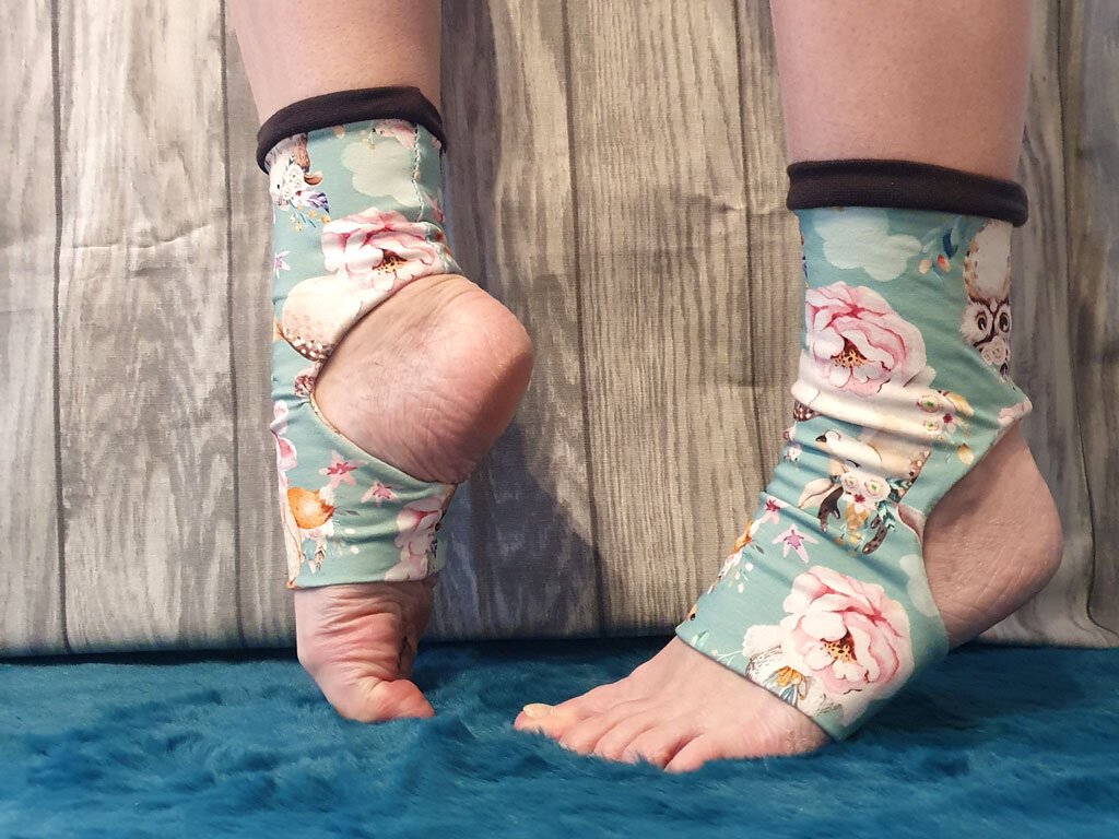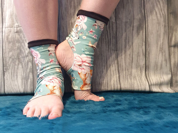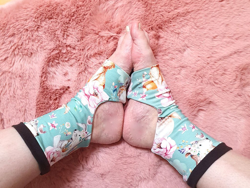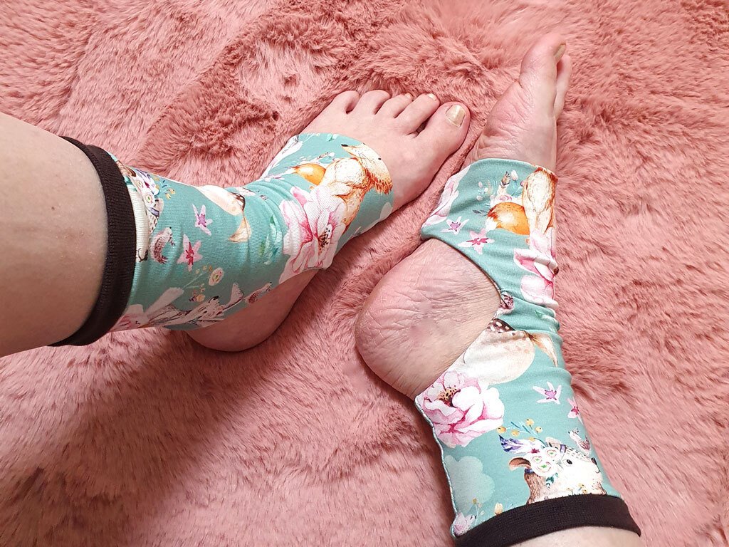 Näh Dir Socken ohne Ferse mit den SURYA Yogasocken! In diesem Ebook erhältst Du das Schnittmuster, mit dem Du Dir die Yogasocken nähen kannst, und gleich drei Nähanleitungen! Das Schnittmuster eignet sich übrigens auch hervorragend für Stoffreste :).