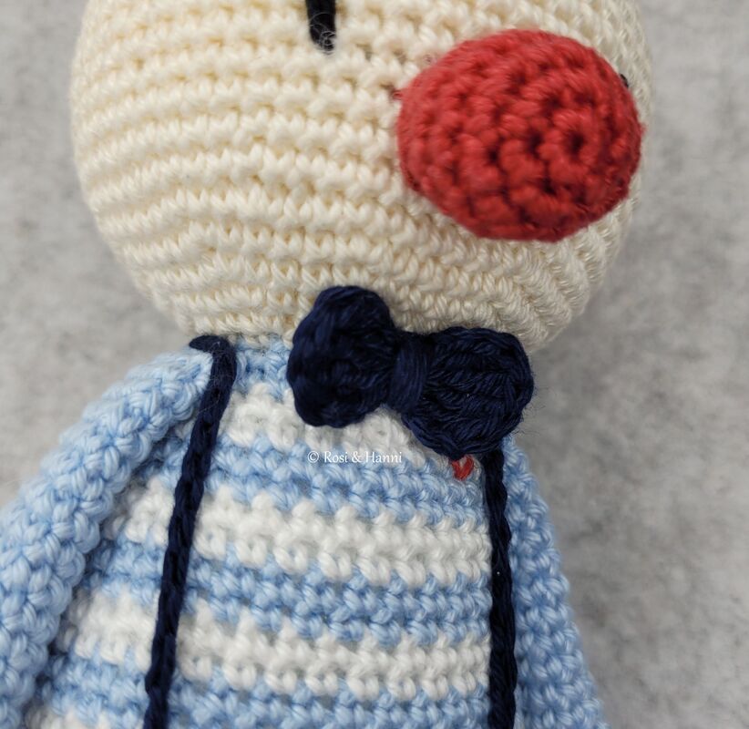 © COPYRIGHT Diese Häkelanleitung dient ausschließlich dem privaten Gebrauch. Die ganze Anleitung sowie Teile dieser dürfen nicht reproduziert, weitergegeben, getauscht, veröffentlicht (weder in gedruckter Form noch im Internet), in eine andere Sprache übersetzt oder verkauft werden. Das Gleiche bezieht sich auf die in dieser Anleitung enthaltenen Bilder. Die nach dieser Anleitung gefertigten Puppen dürfen nur für den privaten Gebrauch gefertigt werden, ein Verkauf ist untersagt. Fotos fertig gestellter Werke dürfen im Internet gezeigt werden, wenn der Designer „Rosi und Hanni“ klar und deutlich genannt wird.