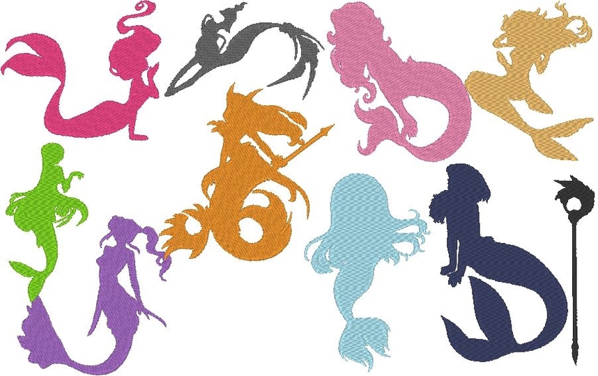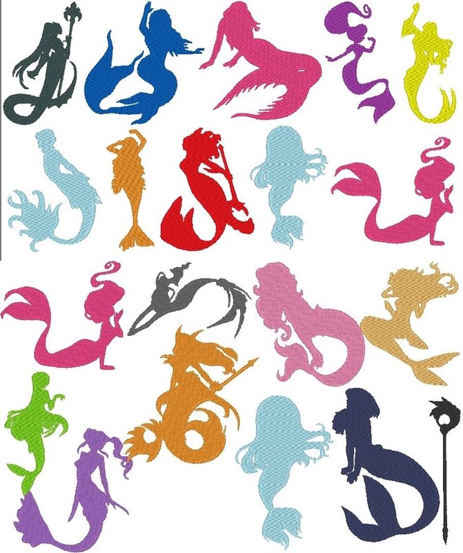 18 Meerjungfrau Motive als einfache Silhouetten Stickdateien