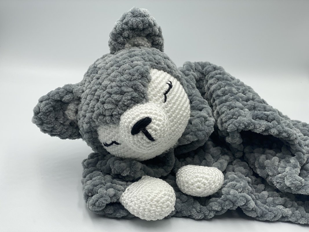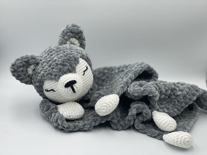 Dieser Schmusehund ist ein hübscher Blickfang für das Kinderzimmer. Das niedliche Schnuffeltuch ist superflauschig und lädt jedes Kind zum Kuscheln ein. Es ist auch super geeignet als Geschenk und zaubert jedem ein Lächeln ins Gesicht.
