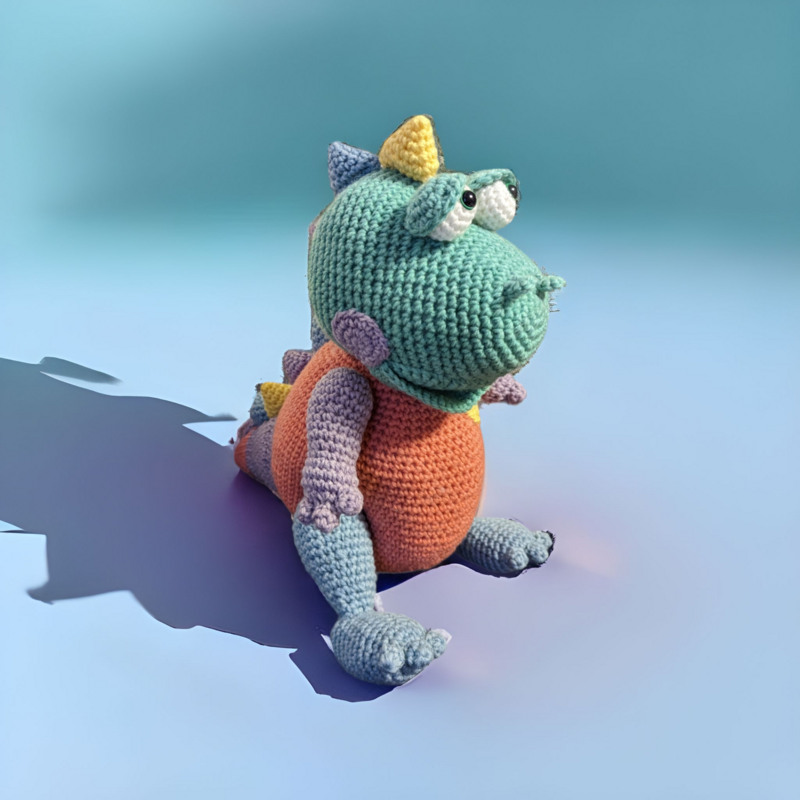 Die größe des Dinos hängt natürlich von der verwendeten Woll und Häkelnadelstärke ab.