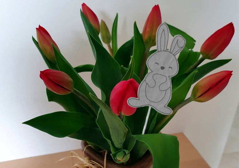 Mit Stab für einen Blumentopf o.ä. oder als Anhänger. Diese Datei ist für die Verwendung von Filz vorgesehen.
