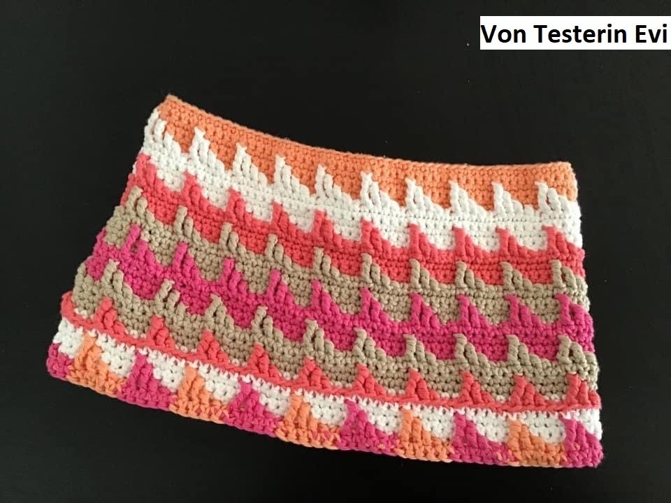 Außerdem solltest du die einzelnen gehäkelten Reihen erkennen können, damit die Reliefstäbchen um die korrekten Maschen gehäkelt werden.