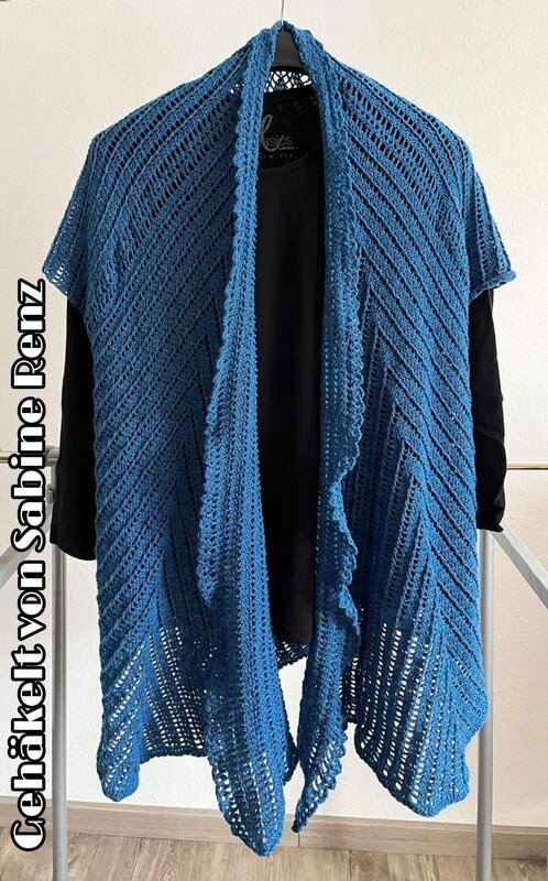 Die Jacke / Weste kann individuell in jeder Konfektionsgröße gehäkelt werden.