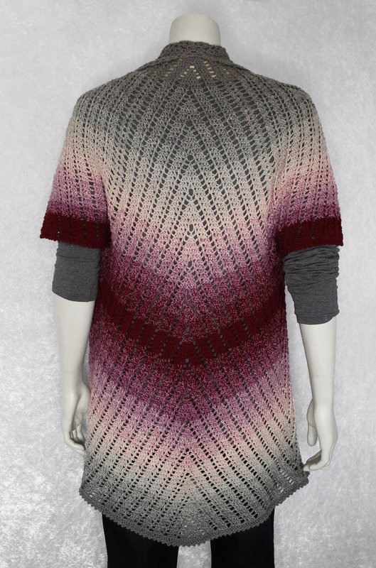 Die Jacke oder Weste kann in fast eder Garnstärke und Farbe gehäkelt werden, sodass du sie leicht an deine Garderobe anpassen kannst. Und das Beste daran ist, dass es keine lästigen Nähte gibt, da bis auf die Ärmel alles in einem Stück gehäkelt wird!