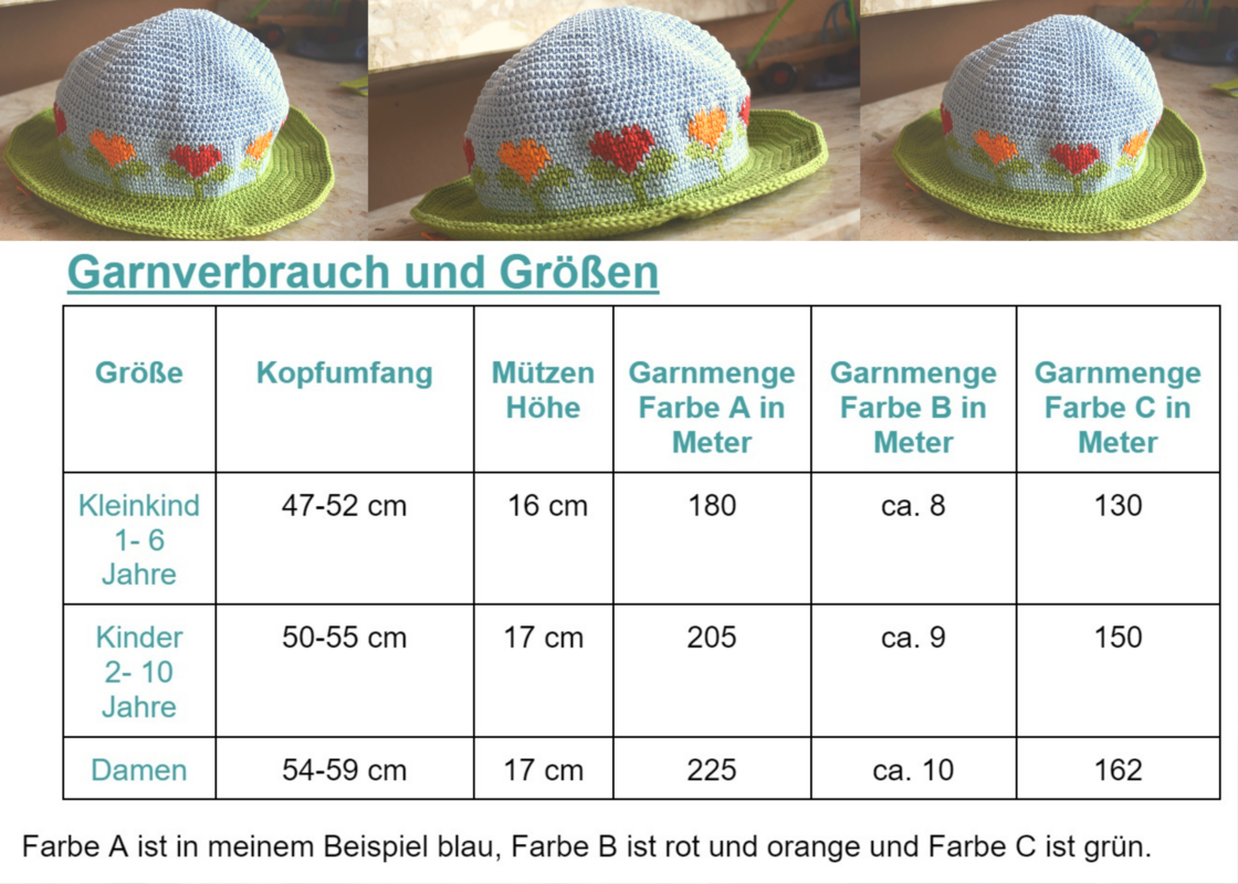 Garnverbrauch und Größen: Details dazu findest du in den Vorschaubildern
