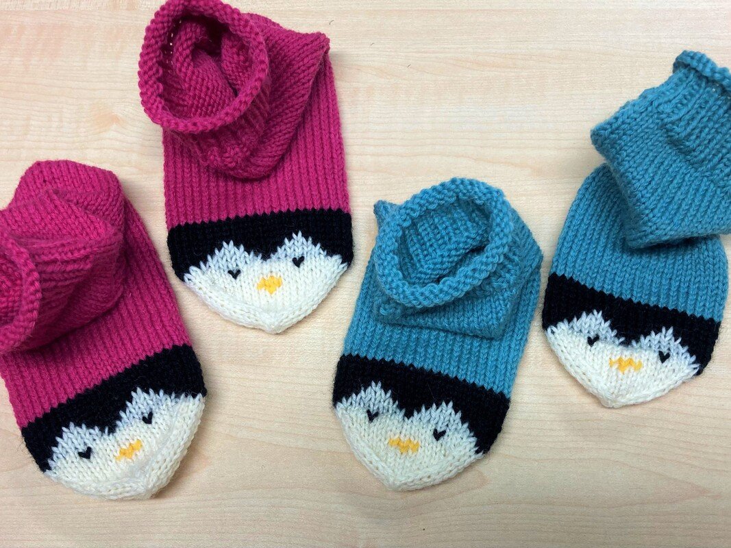 Du kannst so viele Pinguinsöckchen stricken und damit ganz viele Kinder glücklich machen wie Du magst, wenn Du auf Handarbeitsstube Claudia Lindner hinweist.