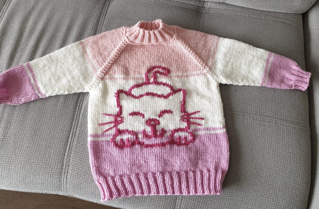 Allerdings verwirrt mich das Sticken der Katze etwas. Da wir von oben nach unten gestrickt haben, sind die einzelnen Maschen ja nun auf dem Kopf stehende Vs. Besteht das Bild tatsächlich aus auf dem Kopf stehenden Maschen? Oder stickt man auf die "Vs" die eigentlich aus zwei unterschiedlichenn Maschen bestehen?