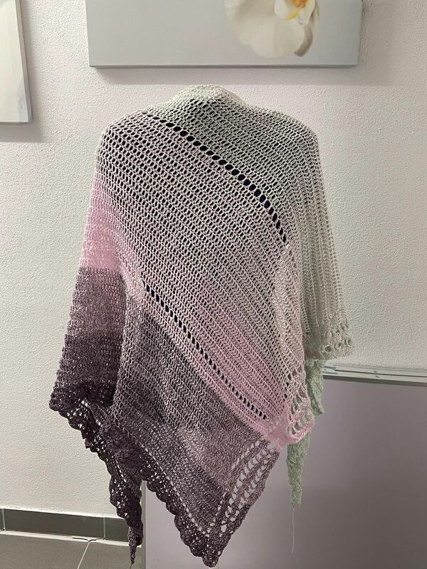 Anaire ist ein anfängerfreundliches, asymmetrisches Tuch, das man perfekt nebenbei arbeiten kann.