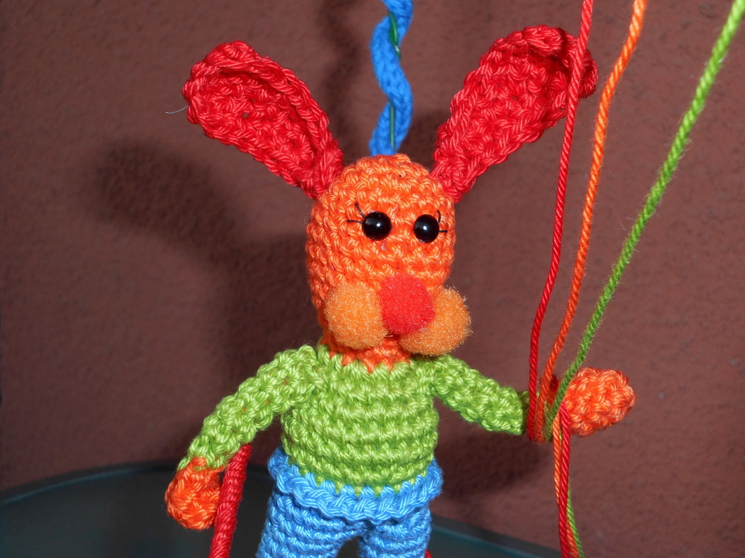 Material : - Baumwolle 50g/125m in den Farben blau, orange, rot und grün