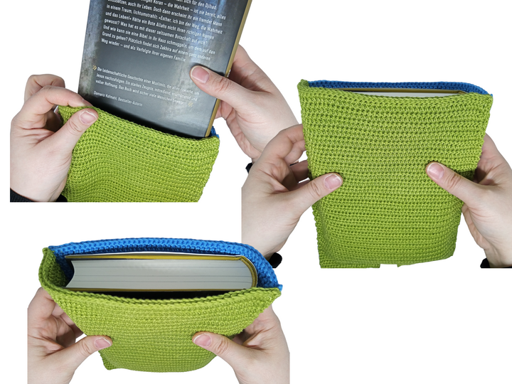 Auch toll zum verschenken geeignet. Natürlich kann die Buchhülle auch in anderen Farbe gehäkelt werden, auch die Motive.