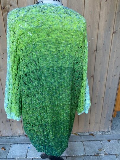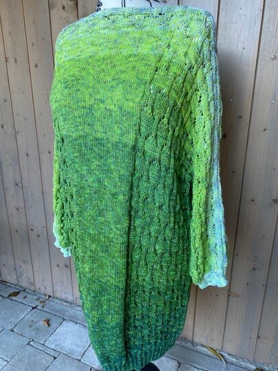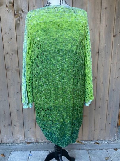 Du kannst diese Anleitung natürlich auch individuell für Dich erweitern, in dem Du Maschen für den langem Arm aufnimmst und das ganze etwas länger strickst und schon hast Du auch im Winter einen Hauch von Sommer. Denn als Kleid macht dieses Werk zu jeder Jahreszeit eine tolle Figur. :)
