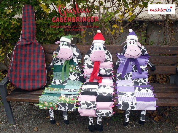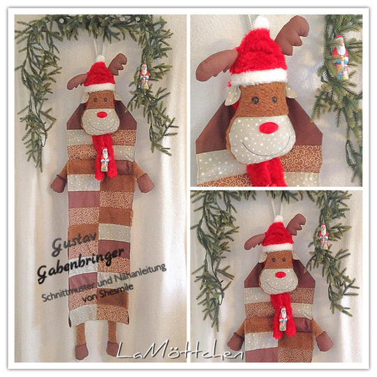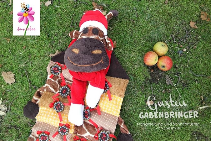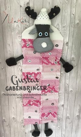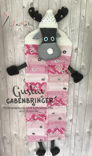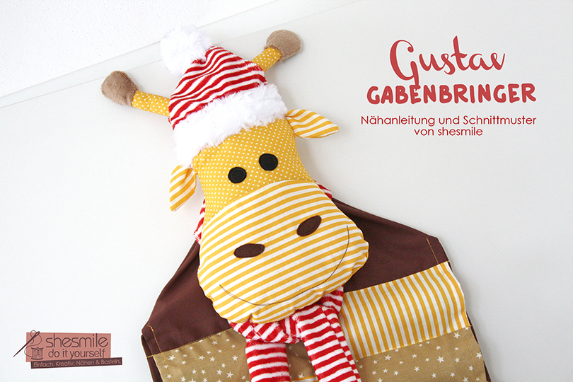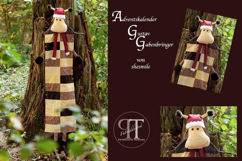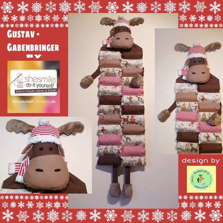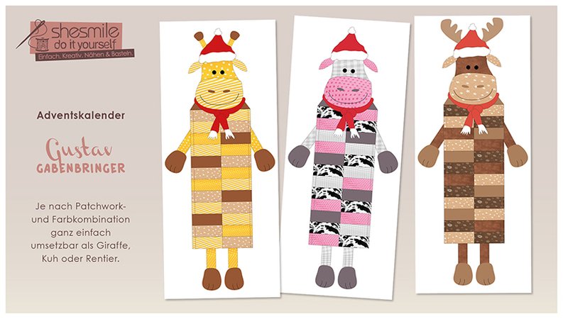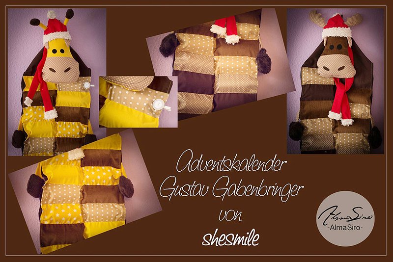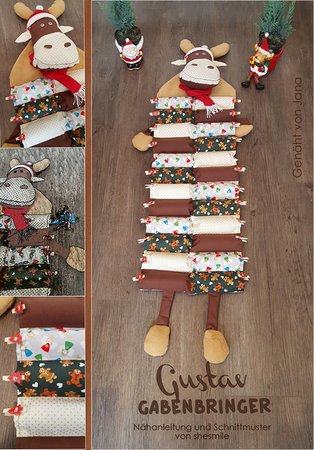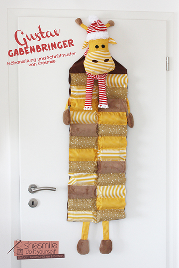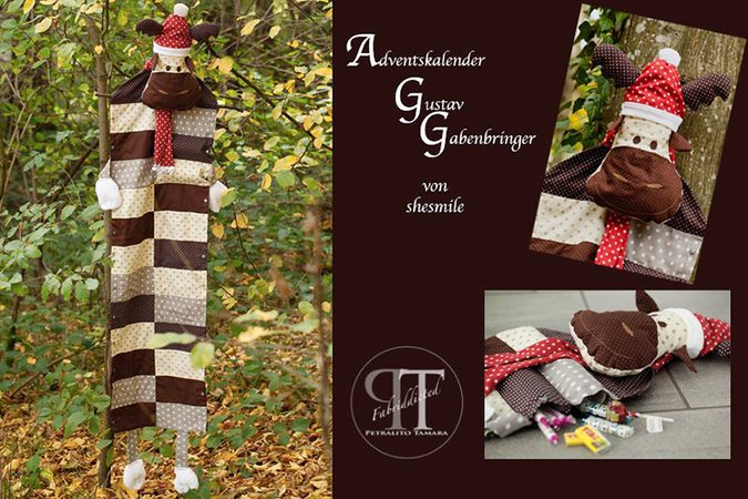 Von mir erstellte Nähanleitung und Schnittmuster für einen tierisch langen Adventskalender in Form einer Giraffe, Kuh oder Rentier Namens Gustav.