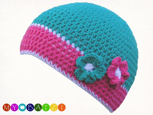 Die Mütze "Mädels No1" ist als Wintermütze, sowie als Frühjahrs- und Herbstmütze geeignet. Durch die zwei Farben mit dem Akzent auf den breiten Musterstreifen lässt sie sich sehr gut zu Jacken kombinieren. Die beiden dünnen Musterstreifen geben nochmals einen schönen Akzent. Die zwei kleinen Blumen sind natürlich besonders bei jungen Mädchen beliebt.