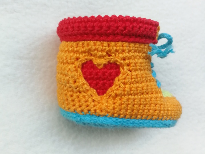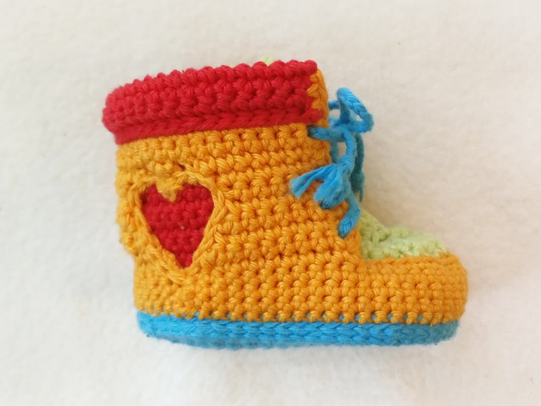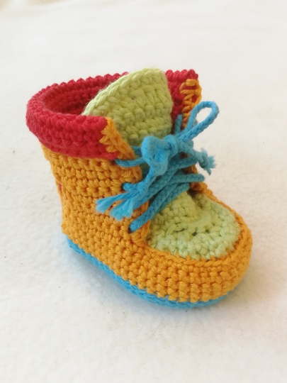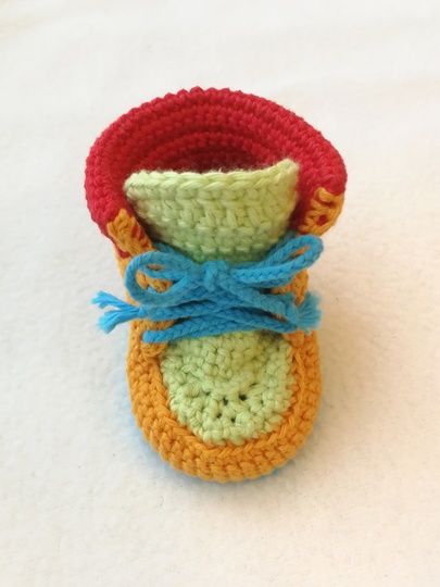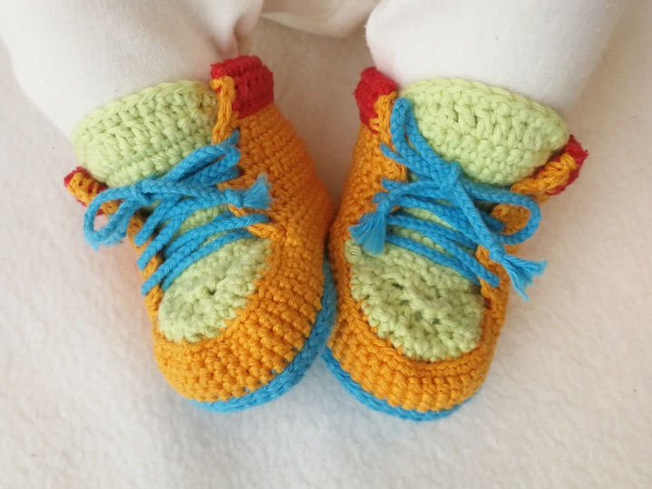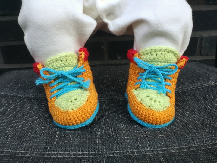 Die Babysneaker haben eine Sohlenlänge von etwa 8 cm und sind etwa 5 cm breit. An der Ferse sind sie bei mir fast 6 cm hoch geworden.