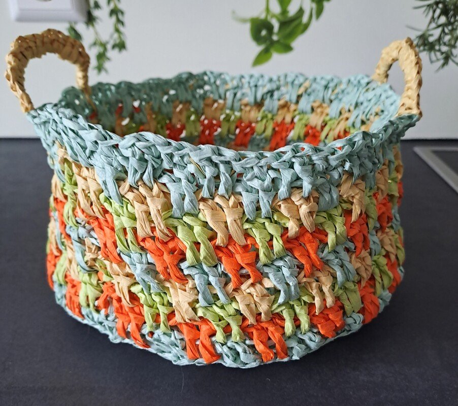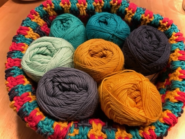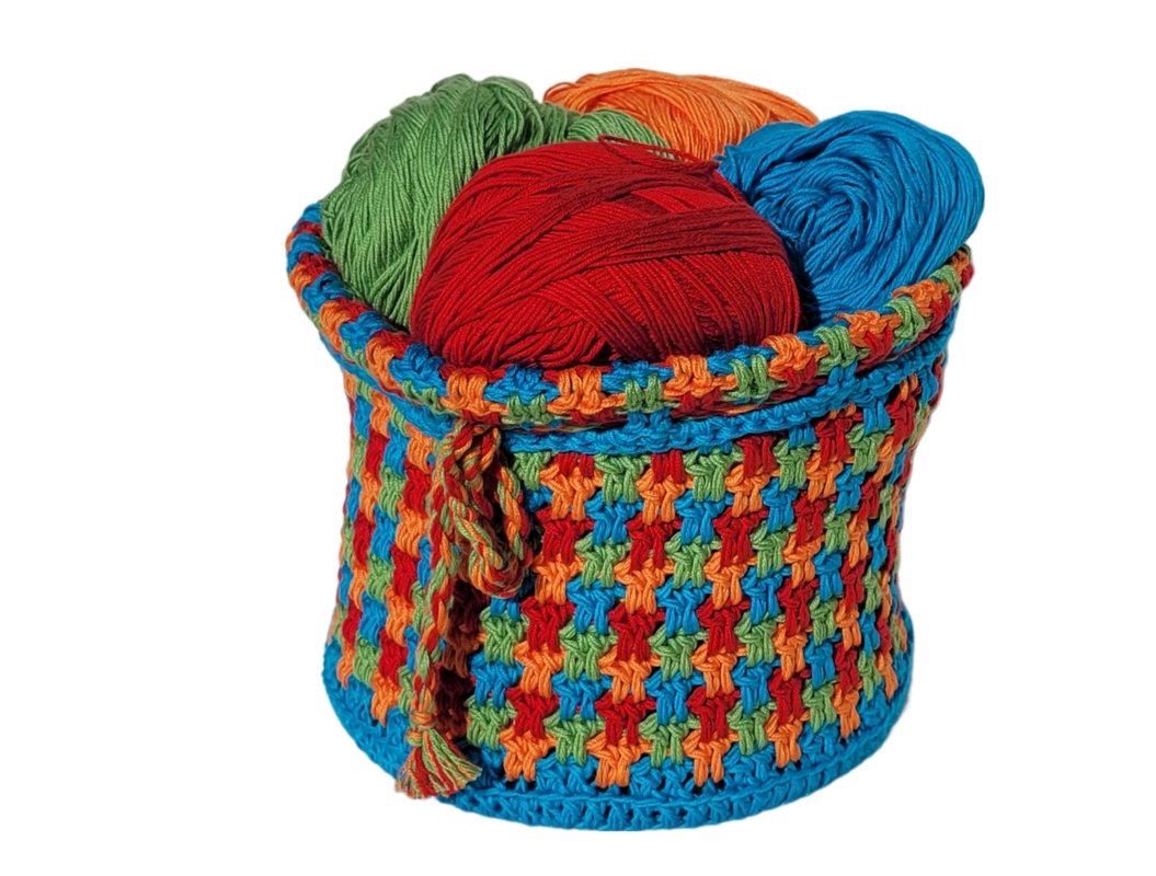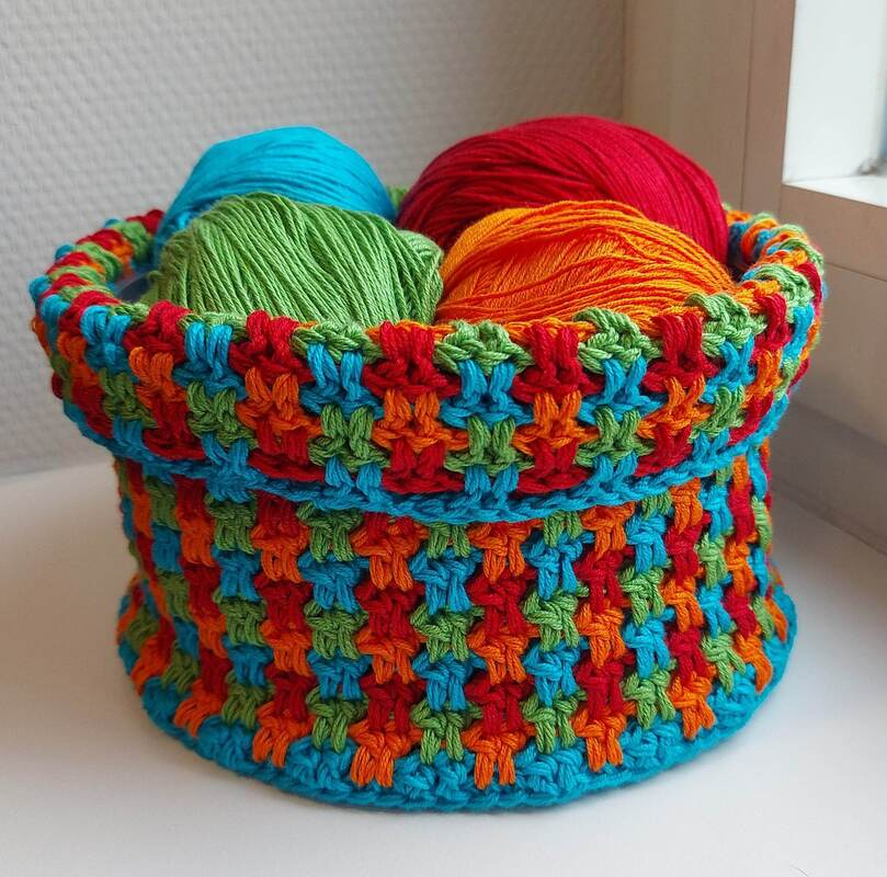 Wähle Garn ab Nadelstärke 5 und verwende 1mm weniger als empfohlen, um die nötige Stabilität als Utensilo zu gewährleisten. Wenn du eine Einkaufstasche machen möchtest, kann es auch lockerer sein.