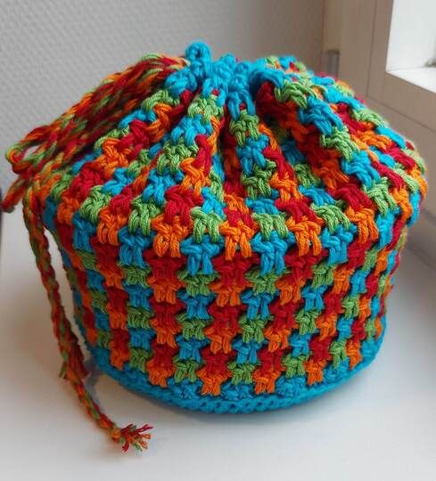 Utensilo oder Beutel EZINE kann in jeder gewünschten Größe gehäkelt werden und ist für viele Garne mit passender Nadel geeignet.