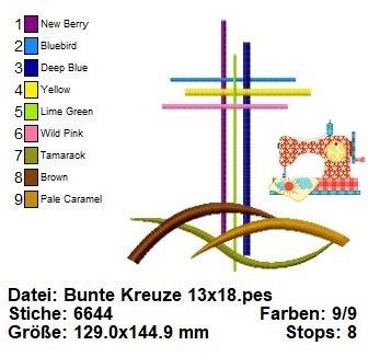 Holen Sie sich noch heute diese aufregende Stickdatei mit bunten Kreuzen in drei verschiedenen Größen und lassen Sie Ihrer Kreativität freien Lauf! ️
