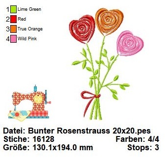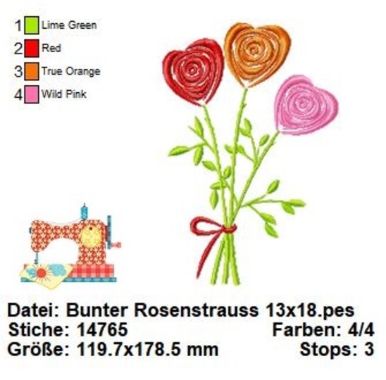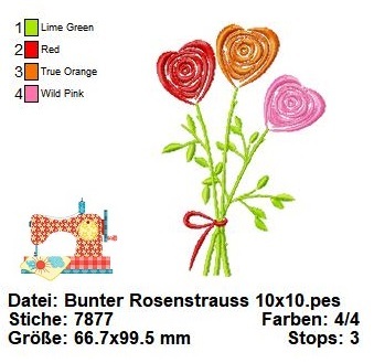 Dieses Rosenstrauß-Design ist perfekt für alle Arten von Projekten, von Kleidung und Accessoires bis hin zu Heimtextilien. Es ist eine wunderbare Möglichkeit, ein Stück zeitloser Schönheit in Ihre Stickerei-Projekte zu bringen.