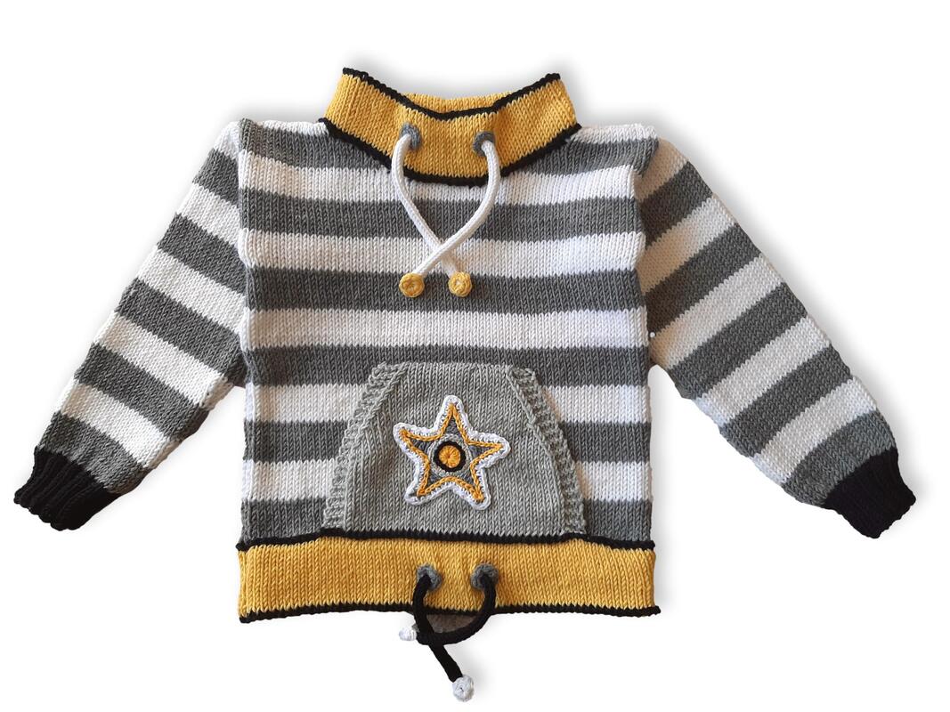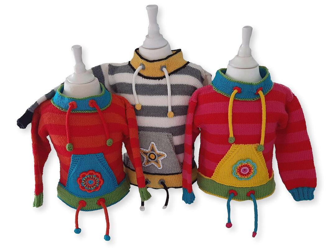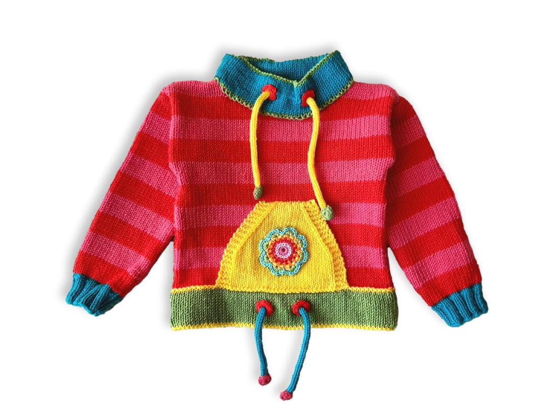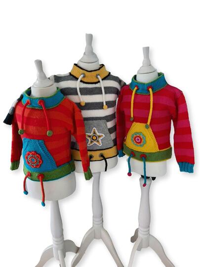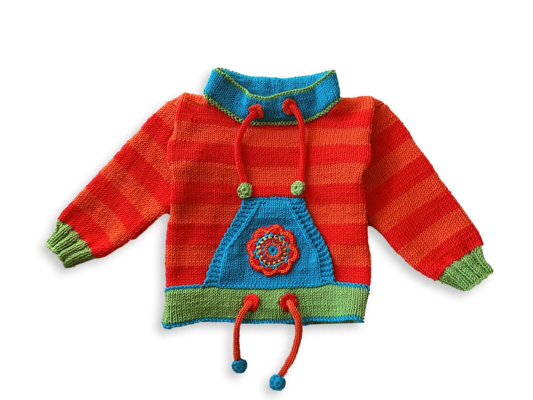 Die Bänder am Hals und Bund sind "Fake". Sie peppen den Pulli optisch auf.