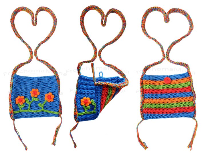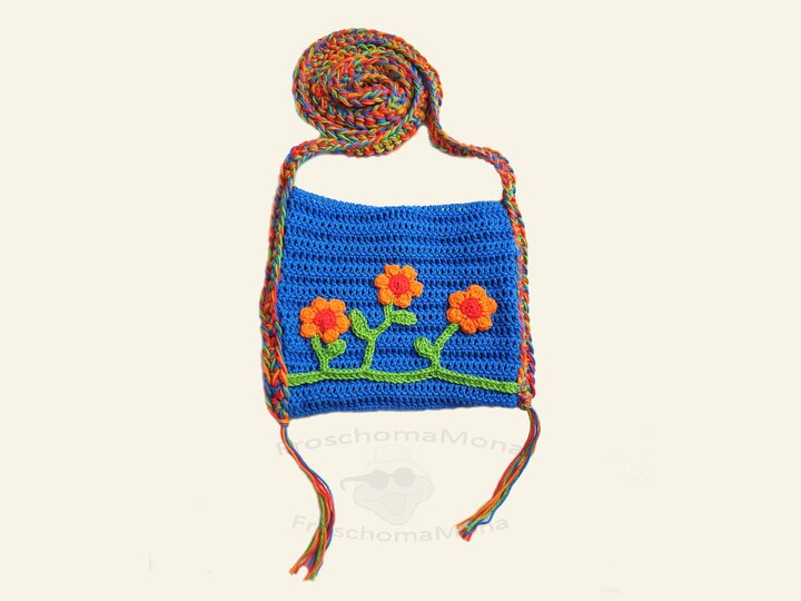 Häkelschriften für die Tasche und die Blumen sind enthalten.