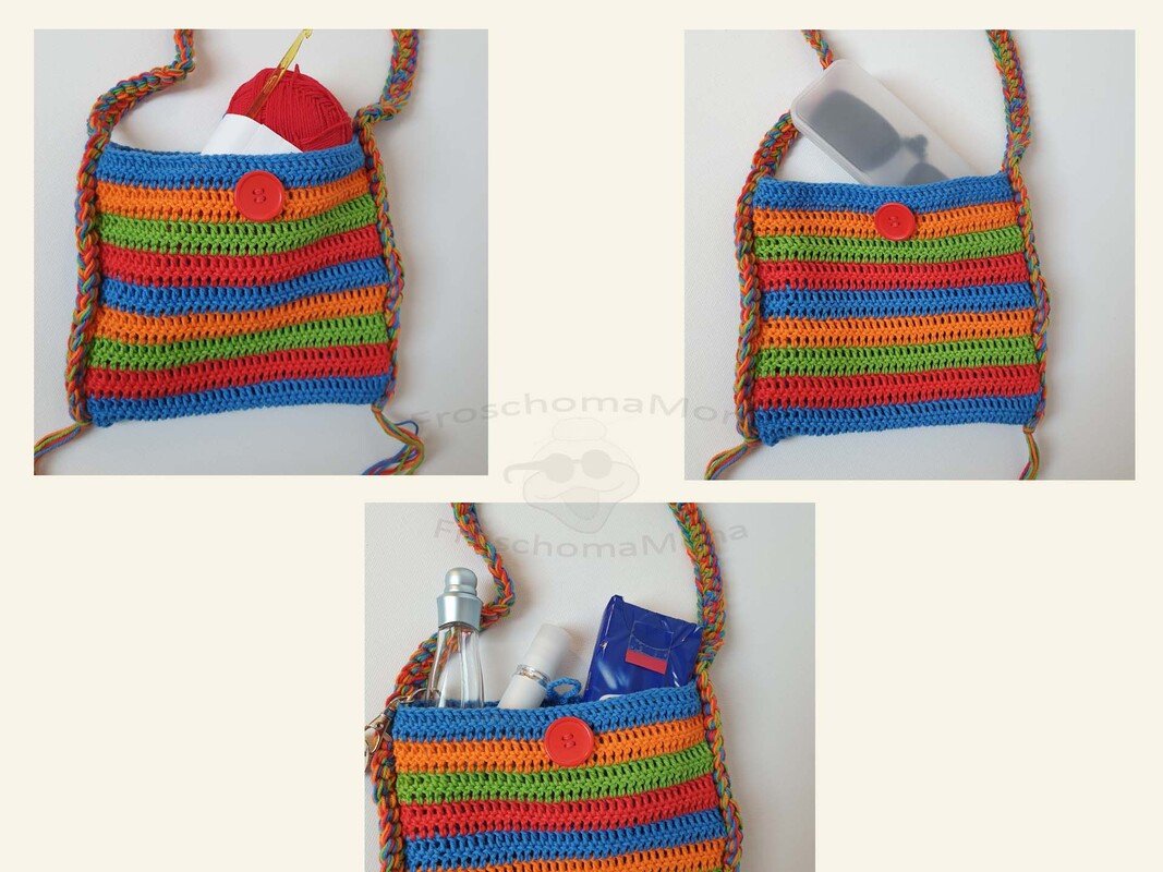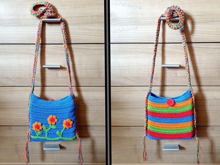 Mit dieser Anleitung zeige ich dir, wie du diese hübsche kleine bunte Tasche häkeln kannst.