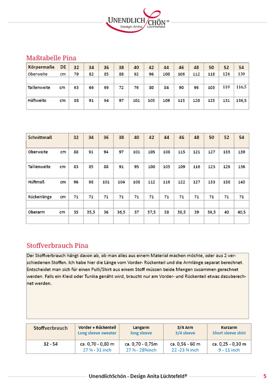 Mit dem Schnittmuster Pina kannst du deiner Kreativität freien Lauf lassen und dein eigenes, individuelles Kleidungsstück kreieren. Die verschiedenen Optionen für den Kragen und Ärmel geben dir viele Möglichkeiten, um dein Shirt, Pulli oder Kleid zu gestalten.