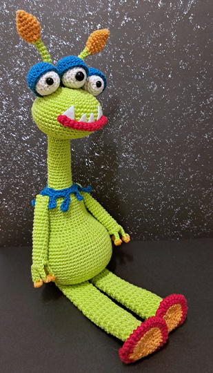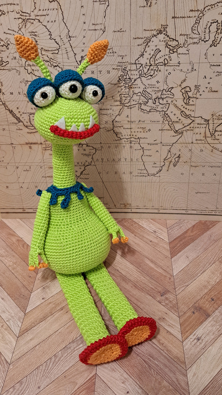 Wenn ihr mit dem angegebenen Garn (50g~125m) und Nadelstärke 2,5 häkelst wird Alice etwa 40 cm groß.