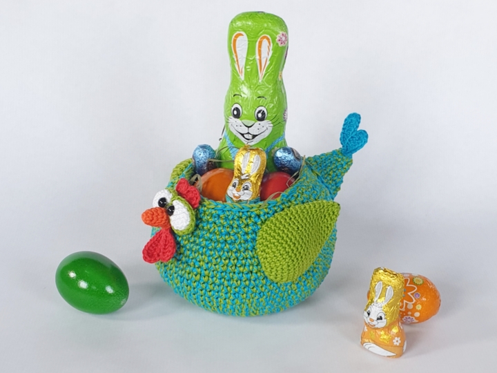 Mit vielen Leckerreien gefüllt ist sie das perfekte Osternest , natürlich kannst du ihr ein kleines Blümelein oder auch was anderes einfüllen. Ich denke sie wird mit allem zufrieden sein :-)