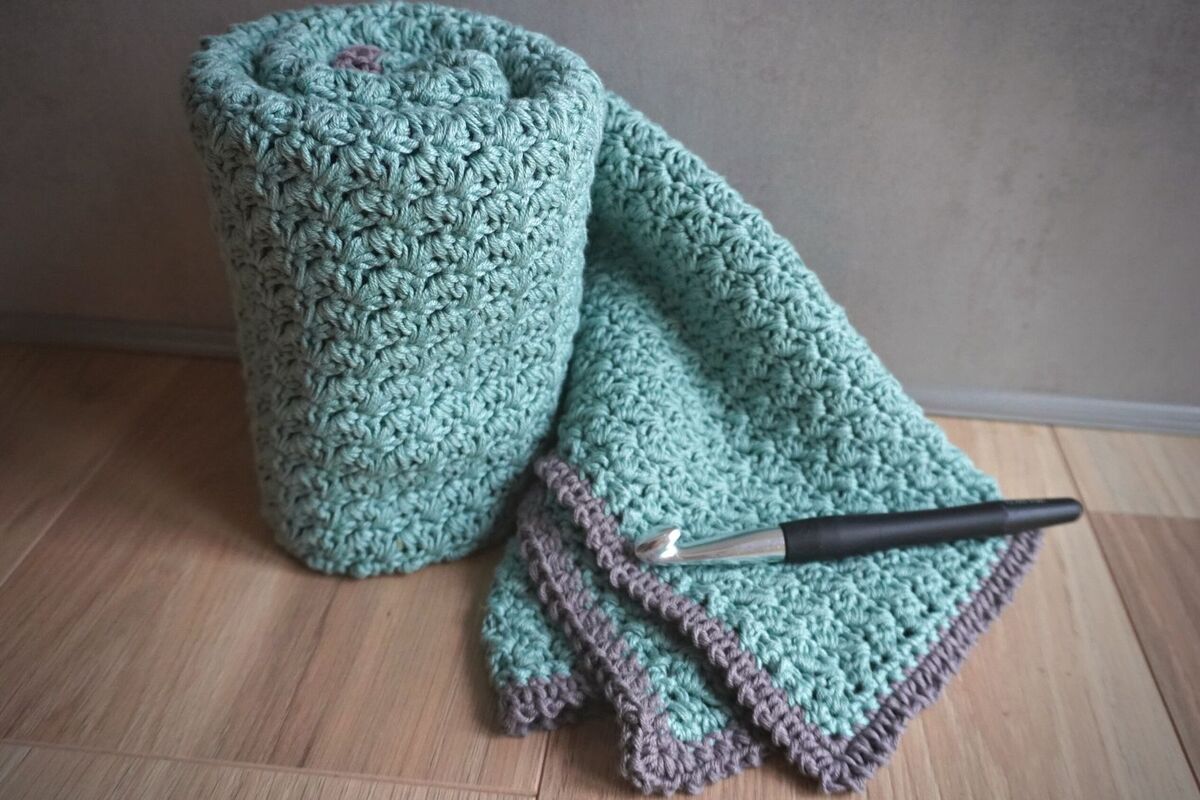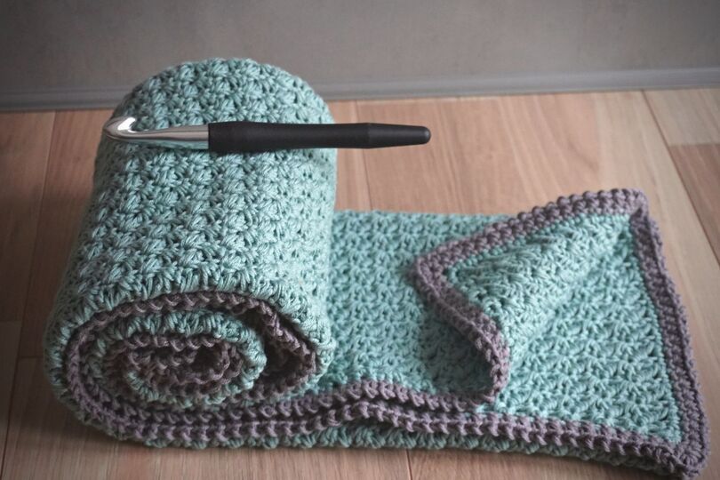 Meine Babydecke ist ca 65cm breit und hat eine Länge von ca 75cm. Sie können die Decke aber so groß häkeln wie Sie möchten.