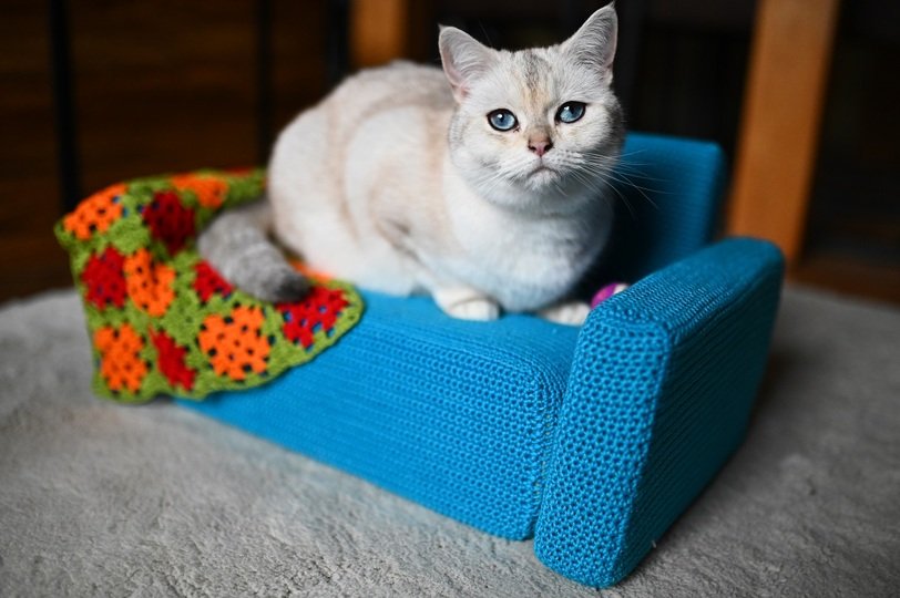 Das schicke Katzensofa eignet sich auch für kleinere Hunde und kann ggf. in der Größe angepasst werden.
