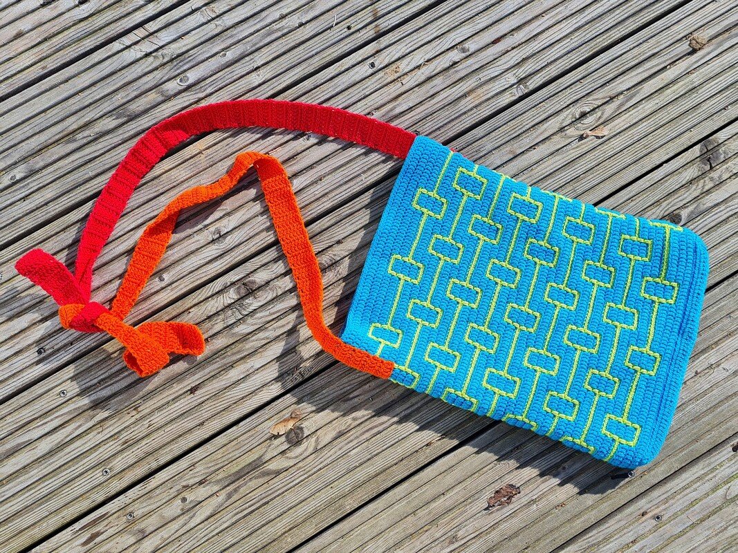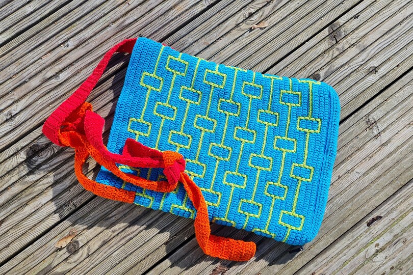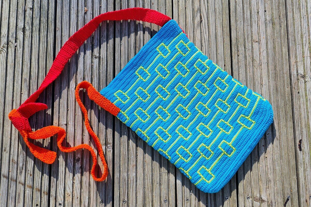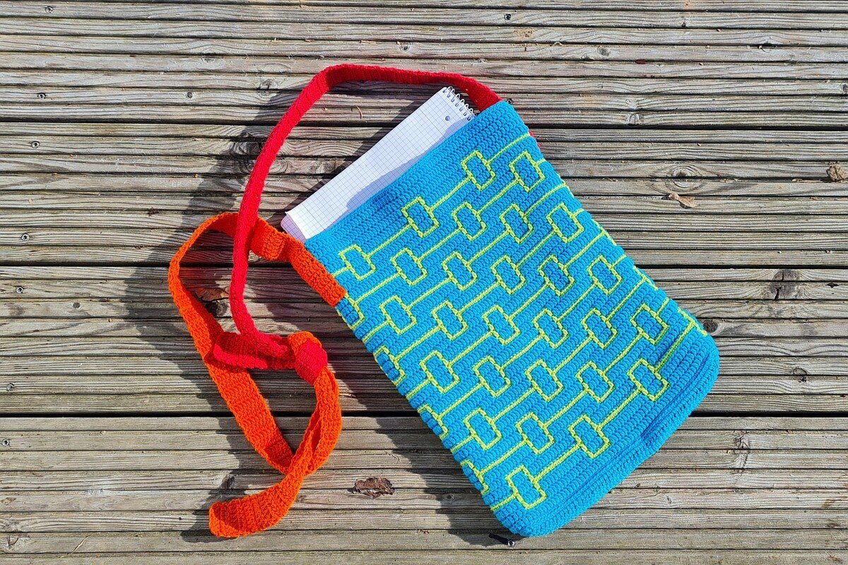 Die Tasche ist ein kleines, aber feines Projekt, um in die Mosaik-Häkeltechnik einzusteigen.