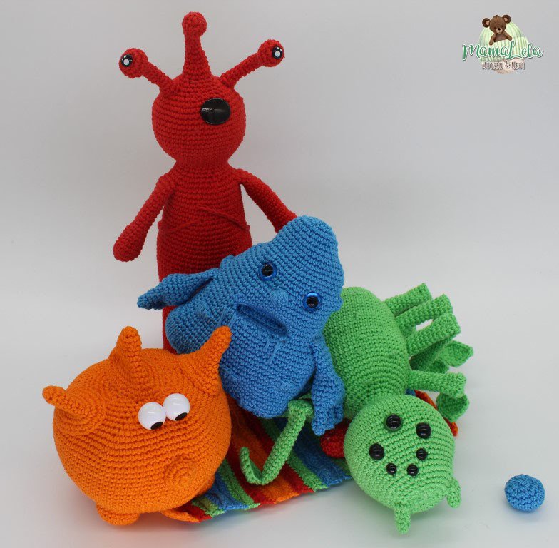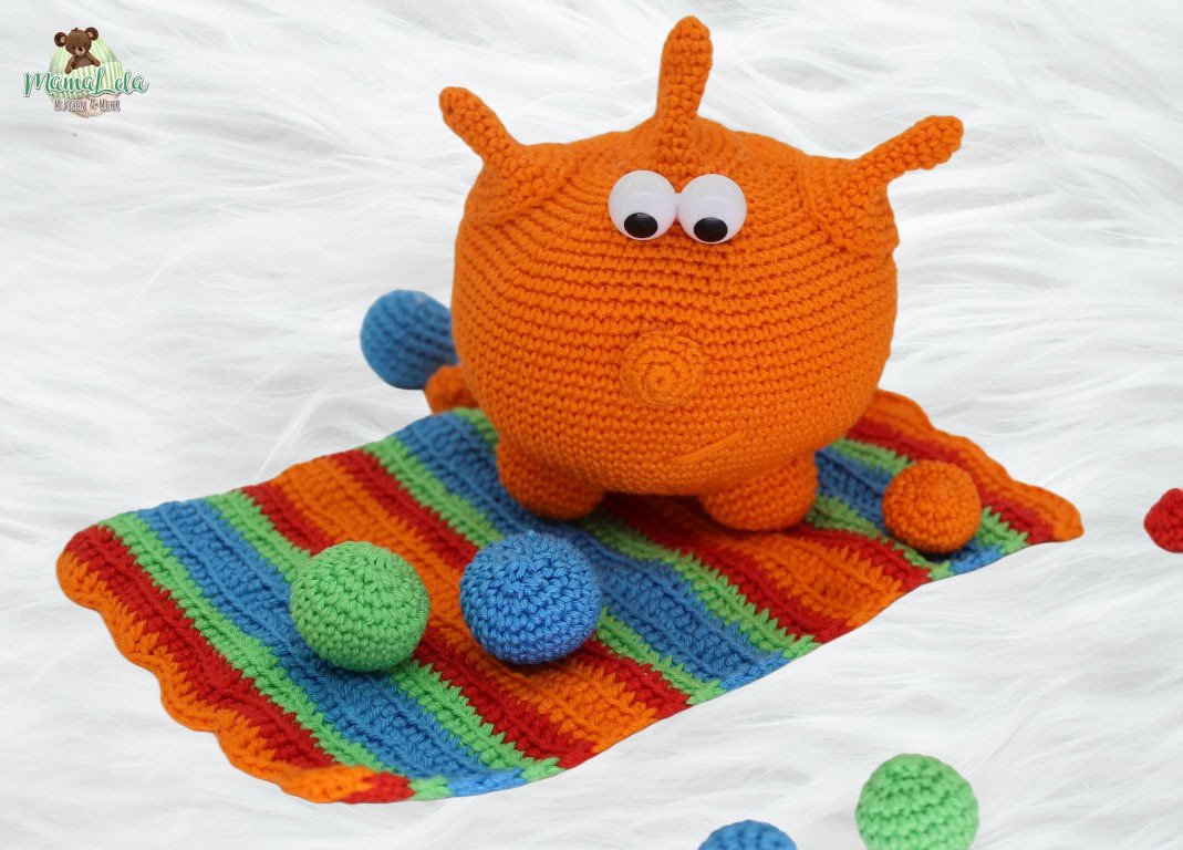 Mit dieser Häkelanleitung könnt ihr euch die im Artikelbild gezeigten Monsterchen, den Teppich und die Bälle zaubern.