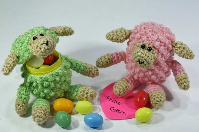 Dann sind die Schäfchen total niedliche Osterdeko oder Schlüsselanhänger und Taschenbaumler.