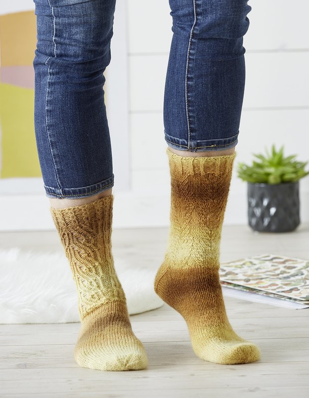 Es warten 24 Socken - sowohl von der Spitze als auch vom Schaft aus gestrickt mit Größentabelle für die ganze Familie