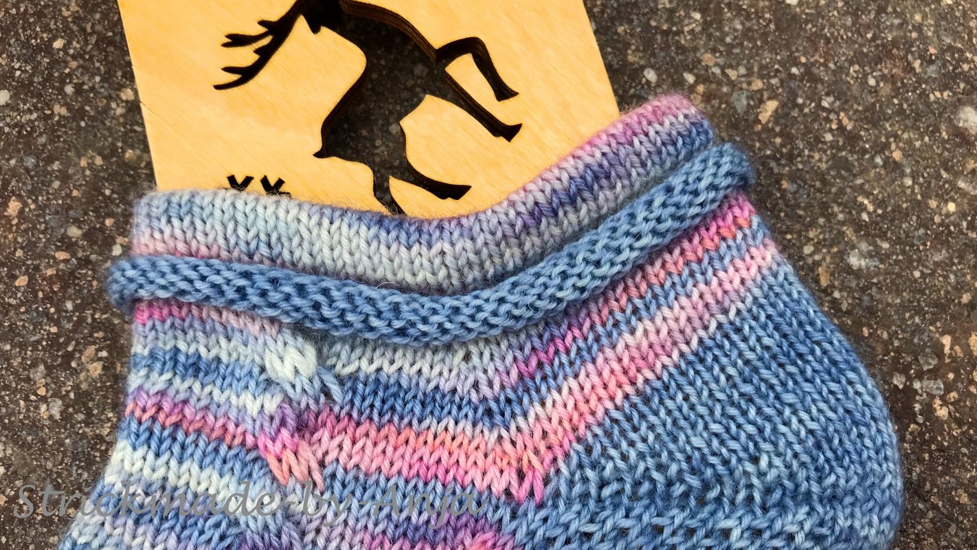 In der Anleitung ist das jeweils gezeigte Bündchen, die Hufeisen-Ferse oder Shadow Wrap Ferse und die Bandspitze beschrieben. Es kann aber beliebig ausgetauscht werden.