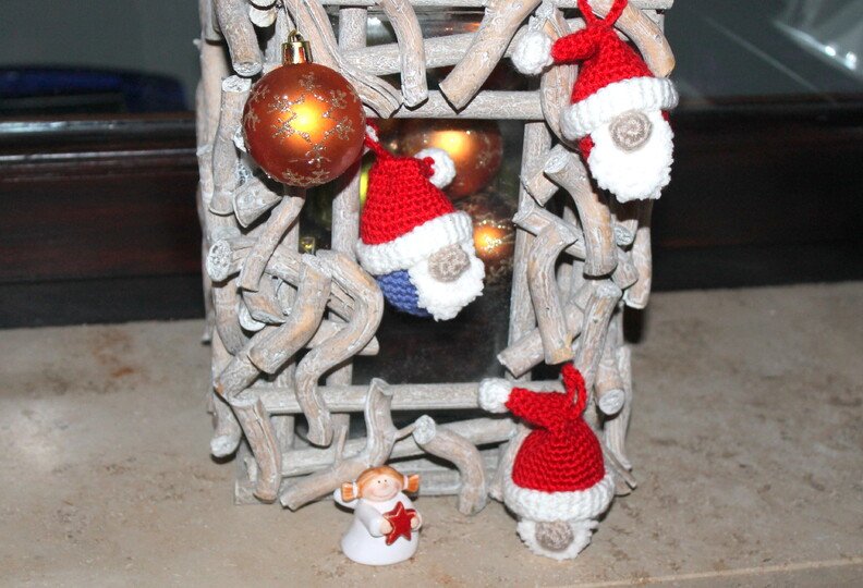Mit 3- 4er Wolle gehäkelt werden die Wichtel ca 7 cm groß (ohne Aufhängung).