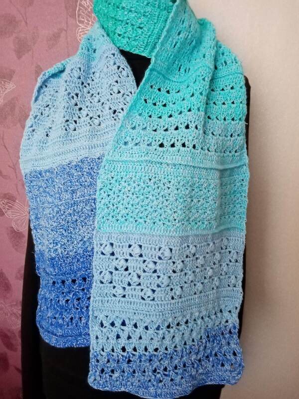 Der Schal kann mit jedem beliebigen Garn gearbeitet werden.