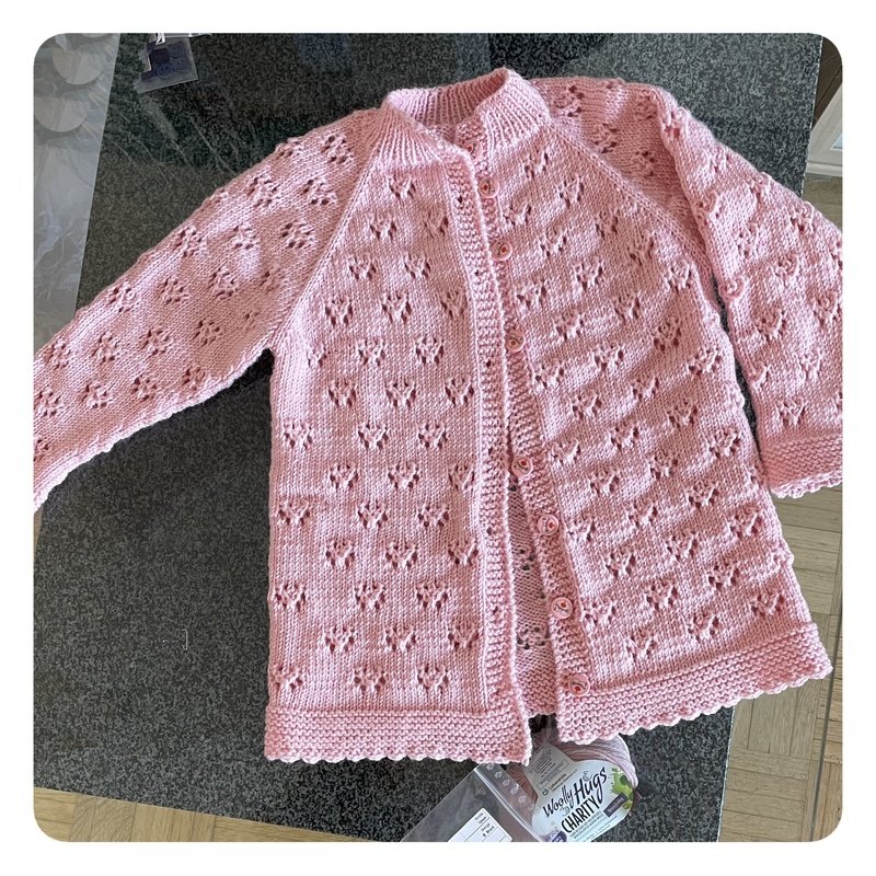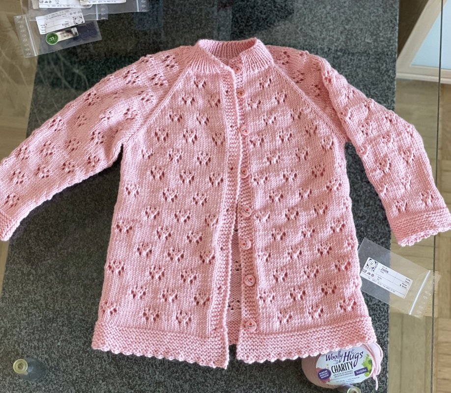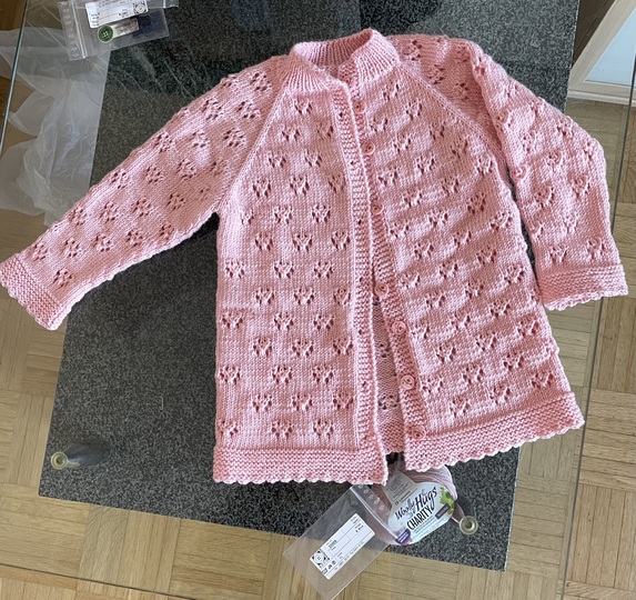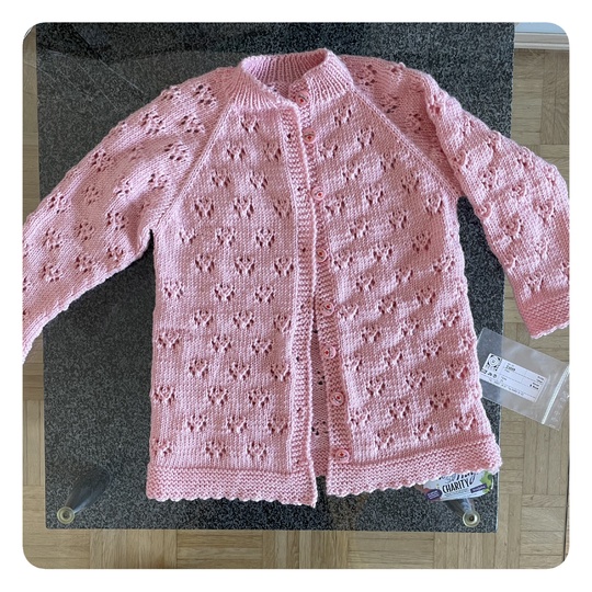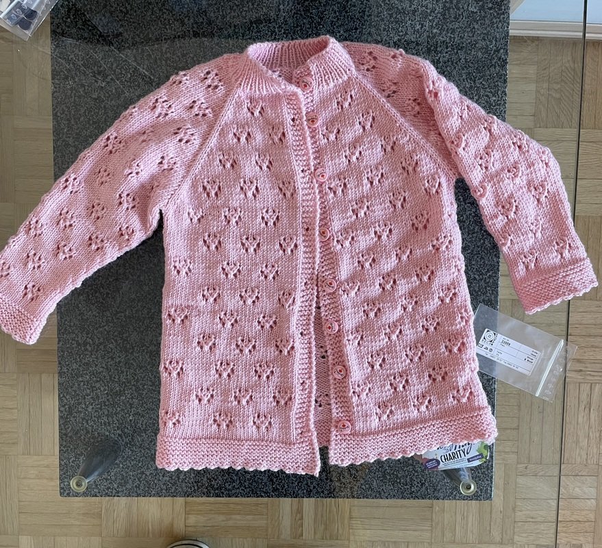 Das Mäntelchen wird von oben nach unten gestrickt und hat durch seine verkürzte Reihen eine perfekte Passform am Halsausschnitt und an den Armen. Es lässt sich dadurch sehr gut anziehen.